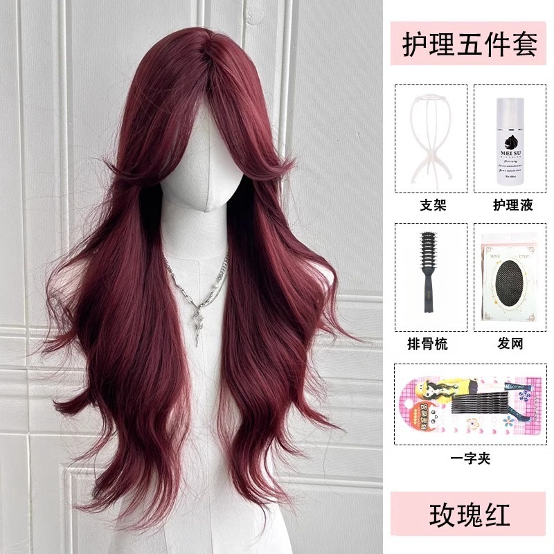 かつら女の赤色ロングヘア日常的に白人の魚のバラの赤色の中に八字巻きの大波シミュレーションの全頭セット