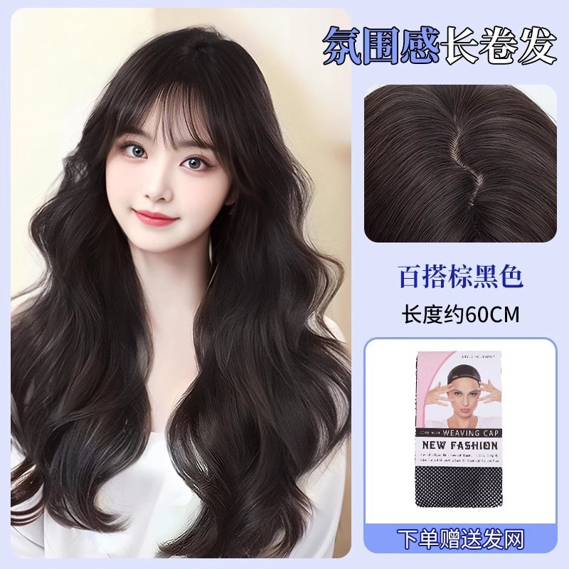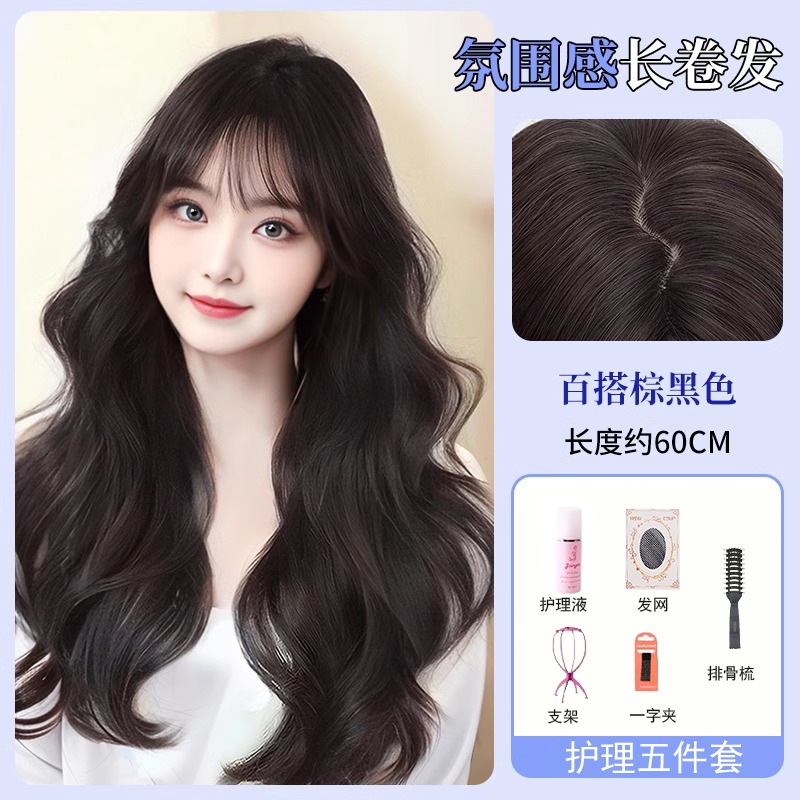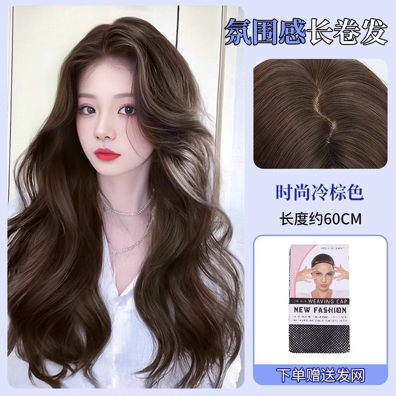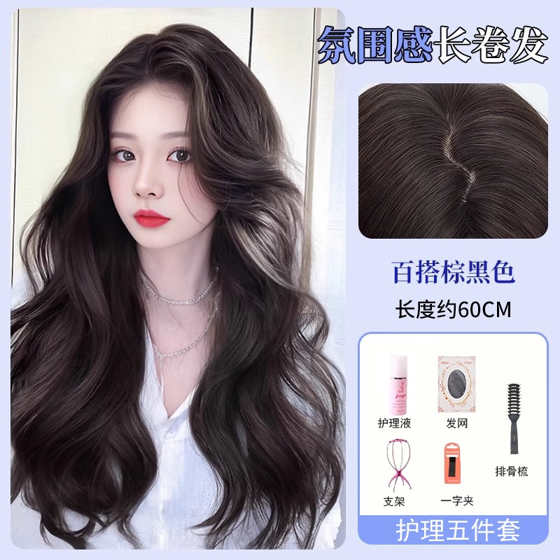 ウィッグオールインワンセット女性ナチュラルシミュレーション髪ハイレベルウェーブ雰囲気ふんわりロングカールヘアーウィッグセット