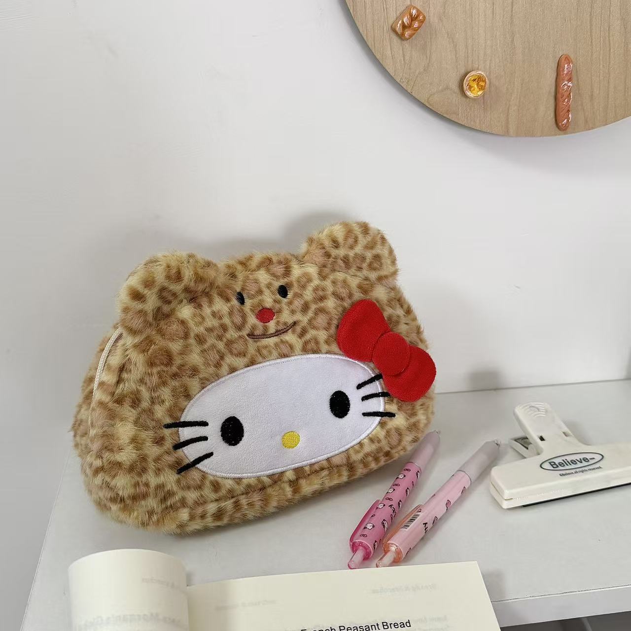 甘いクールinsヒョウ柄キティペン袋ぬいぐるみ高颜値ポーチ文房具ボックス学生大容量収纳袋