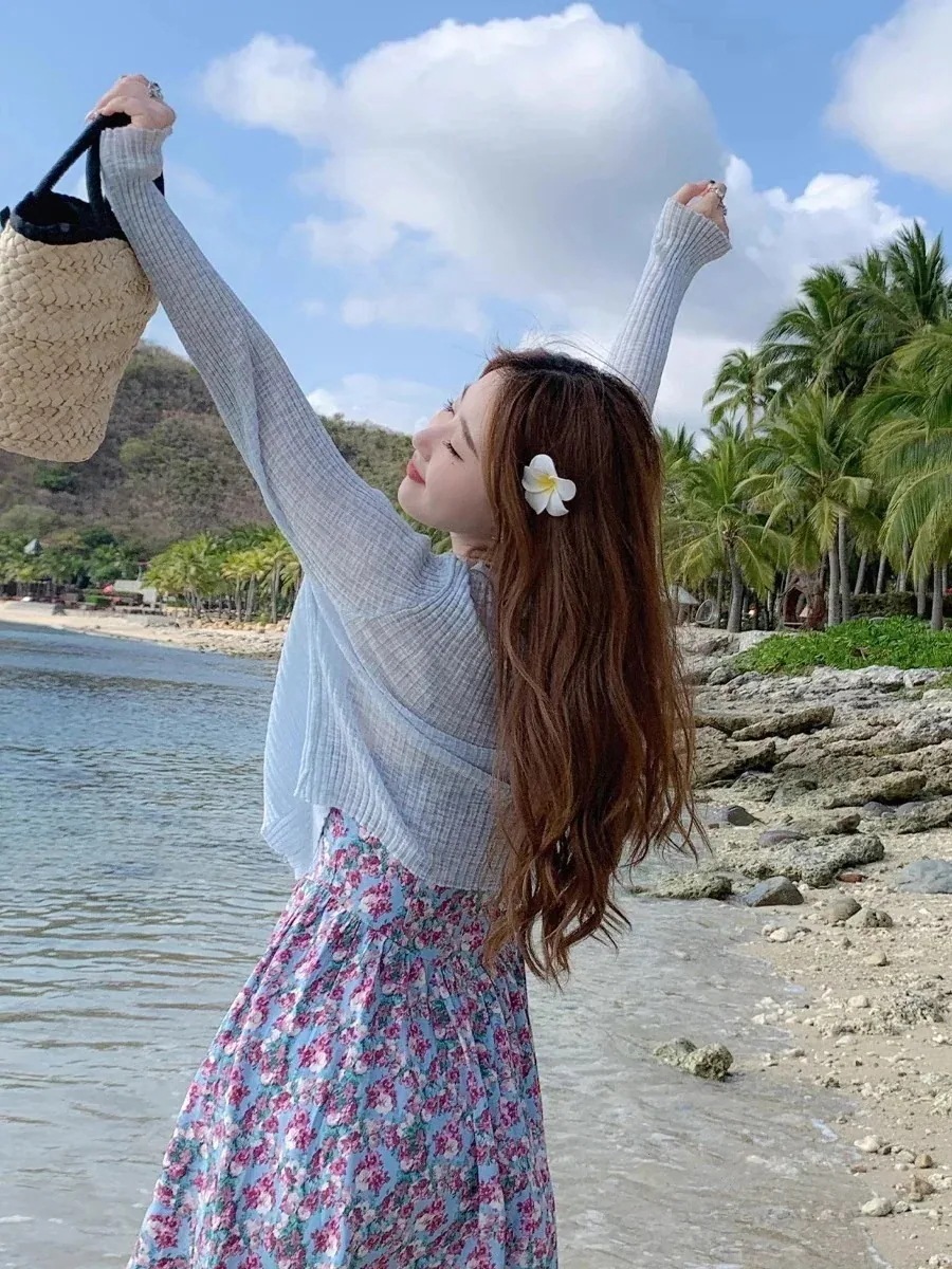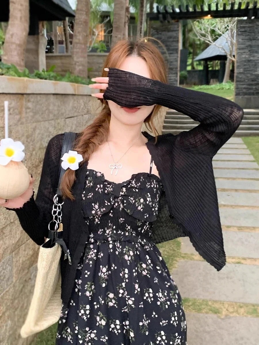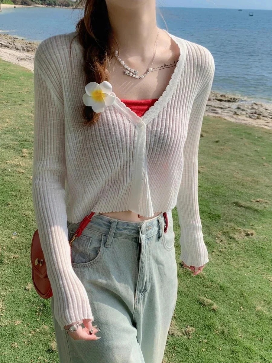 2025 春夏 韓国 ショート丈 薄手 カーディガントップス 長袖 紫外線対策 レディース UVカット 冷房羽織り加工きれいめ透けニット オフィスOLネックカジュアル ファッション韓国
