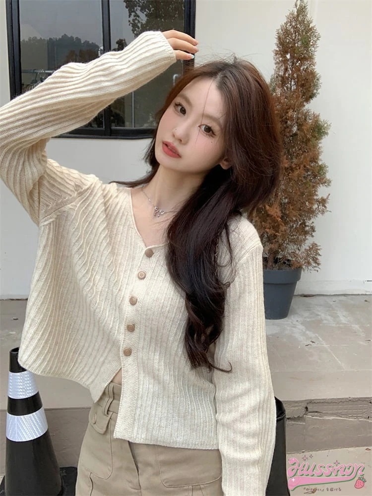 Vネック長袖セーター レディース 長袖 アウターカーディガン 韓国ファッション 可愛い シンプル 大人