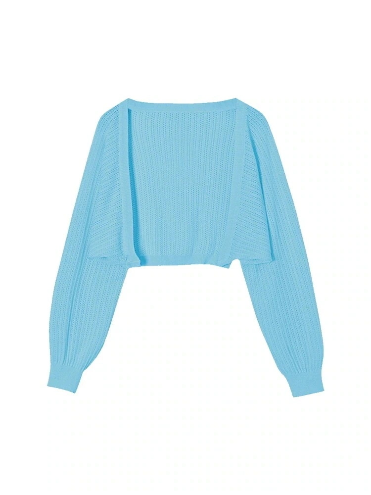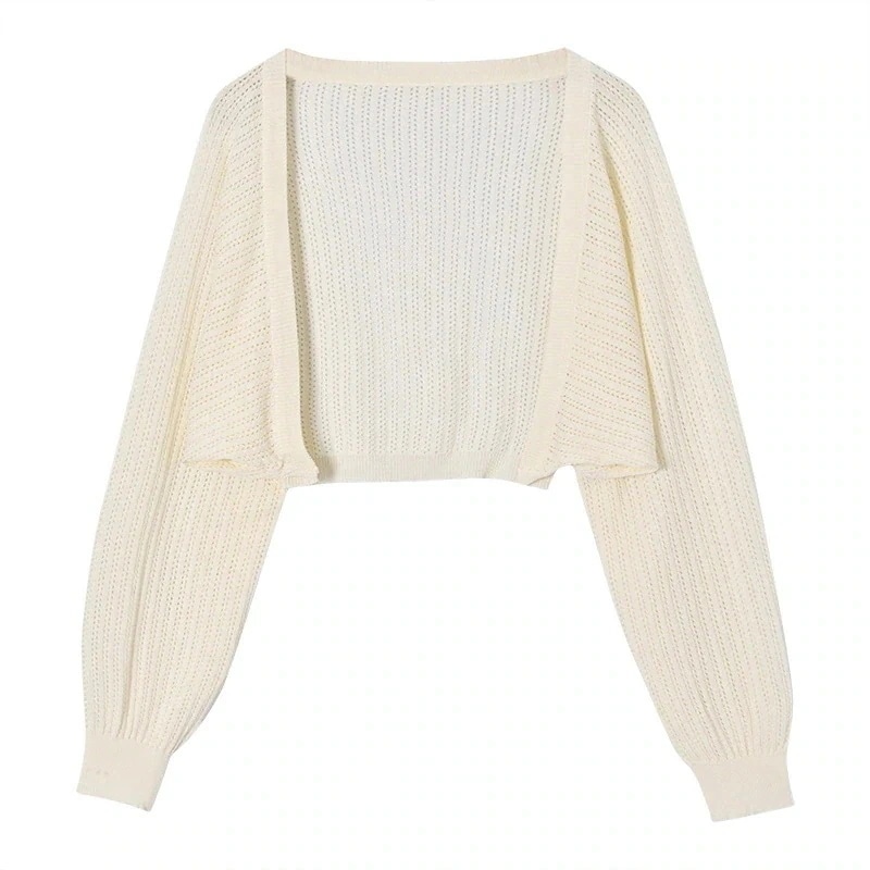 2024 夏 韓国 ショート丈 薄手 カーディガン トップス 長袖 紫外線対策 UV対策 羽織り加工 きれいめ ライトニット オフィス OLネックカジュアルフレンチフェミニンファッション韓国レディース