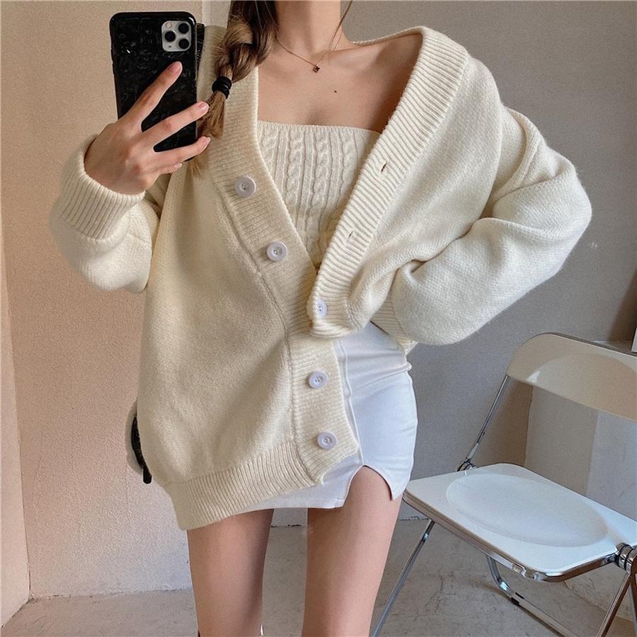 2点セット(カーディガン+キャミソール)可愛い 超目玉 ニットセット ゆるっとお洒落 ニットトップス ゆったり ベーシック
