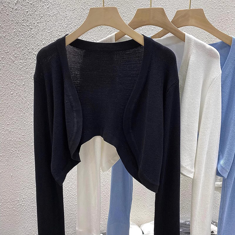 2025 春夏 韓国 ショート丈 薄手 カーディガントップス 長袖 紫外線対策 レディース UVカット 冷房羽織り加工きれいめ透けニット オフィスOLネックカジュアル ファッション韓国