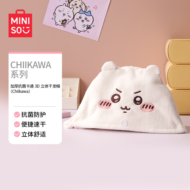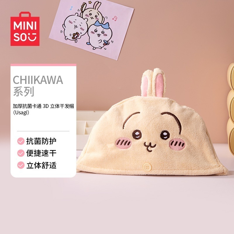 TOPTOY2025年新作 m i n i s o名創優品 正規品保証 ちいかわ ドライヘアキャップ 厚みがあり 柔らかく吸収性があり 髪を拭きます ハチワレ ウサギ ヘアドライハット