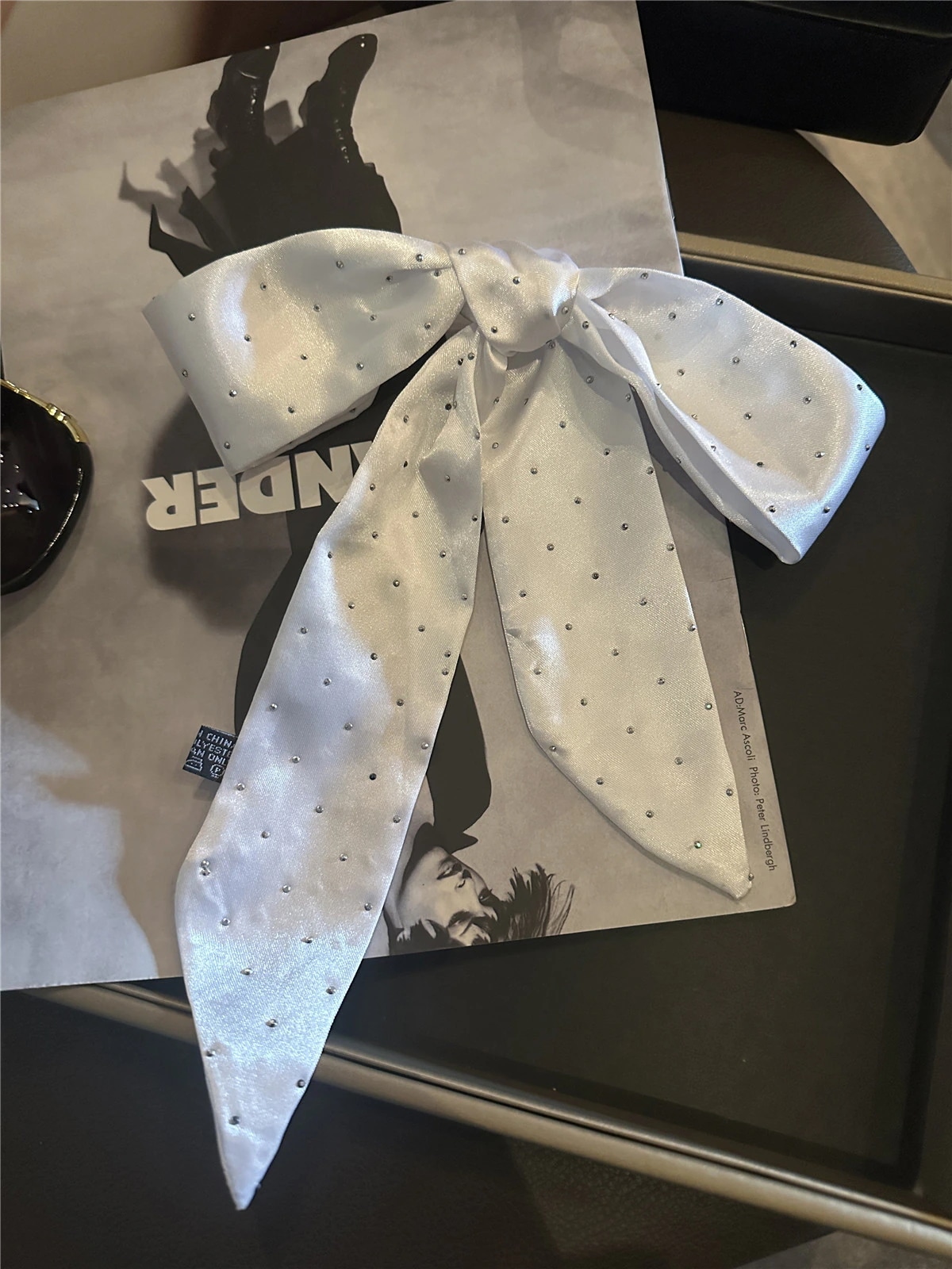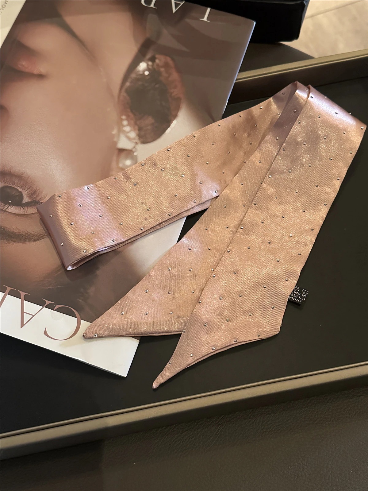 フレンチエレガント ダイヤモンド付きロングスカーフ おしゃれなヘアアレンジ用リボン付きギフトボックス 高級感あふれるスカーフ 装飾用女性用スカーフ
