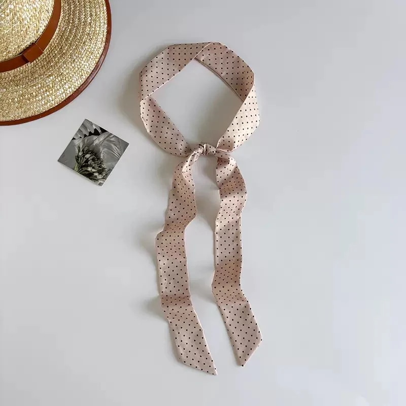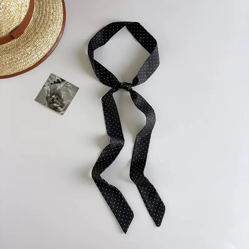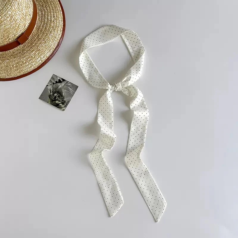 insシンプルドットプリントシルクスカーフ 韓国風万能ロングスカーフ ヘアタイ 束ね用リボン 多機能ネックタイ ミニスカーフ