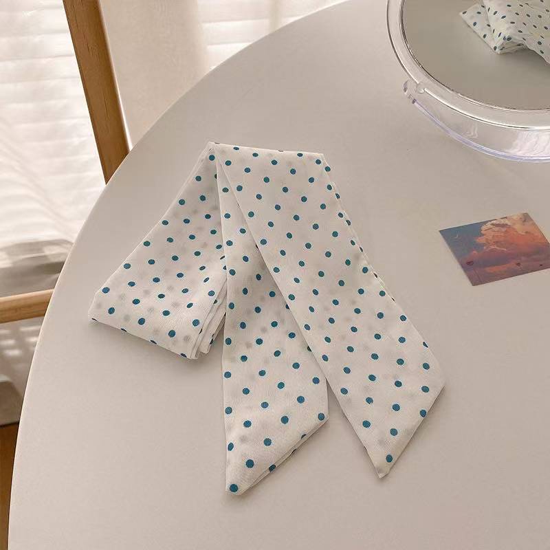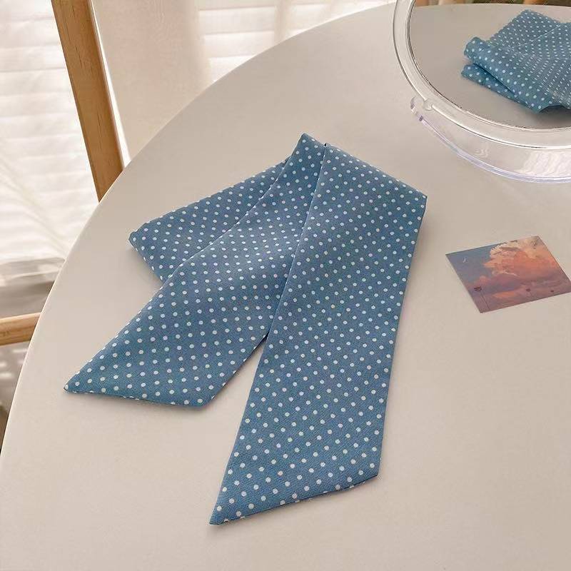 ブルー系ナチュラルシルクスカーフ 韓国風ロングサイズ 万能ヘアアクセサリー 結び紐 雰囲気ネックタイ シルクスカーフ