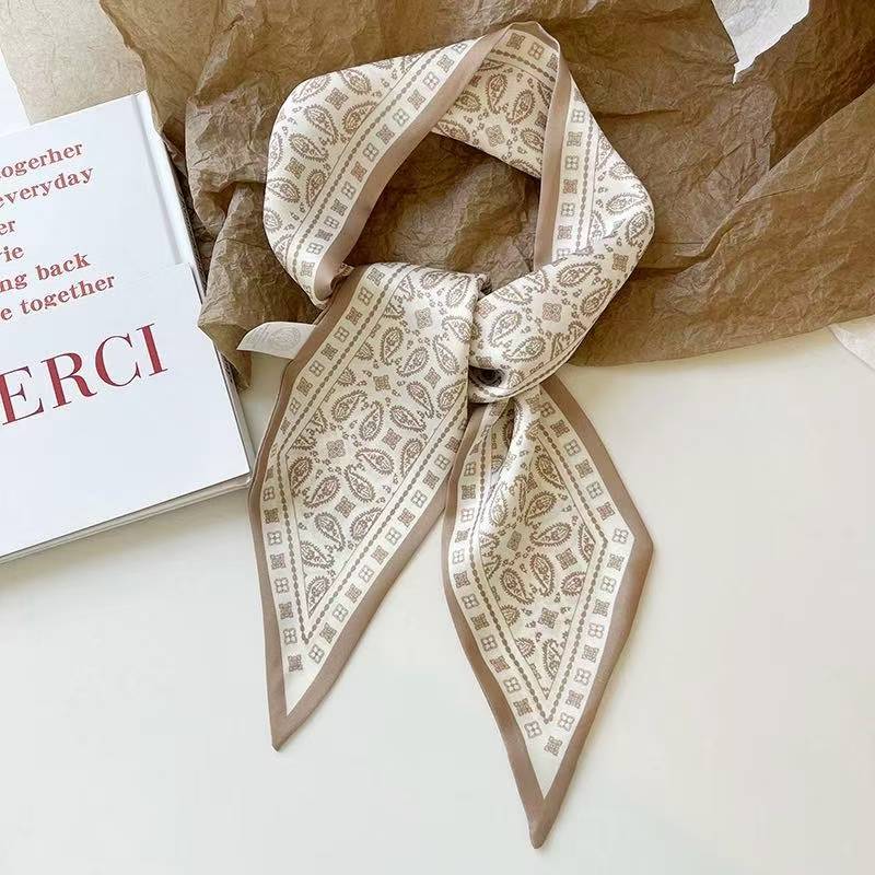 韓国風レトロカシューナッツ柄スカーフ 上品な小スカーフ 何でも合わせられる ヘアアレンジ用 バック用 長いリボン 贈り物用ボックス リボンスカーフ