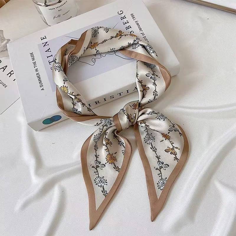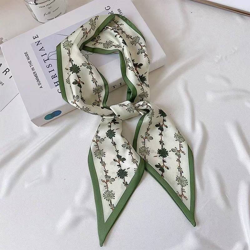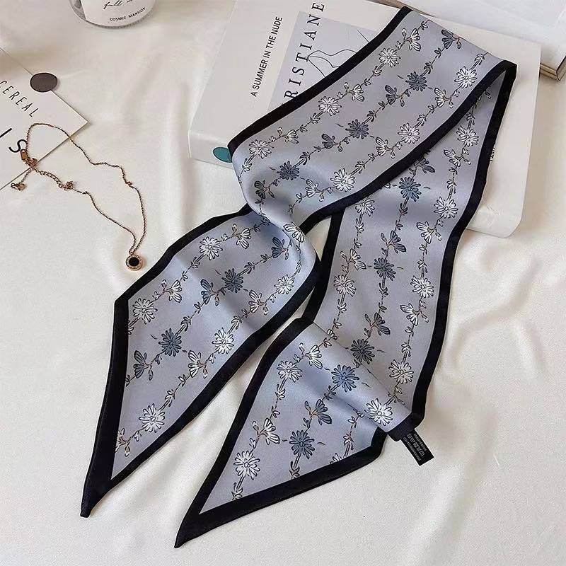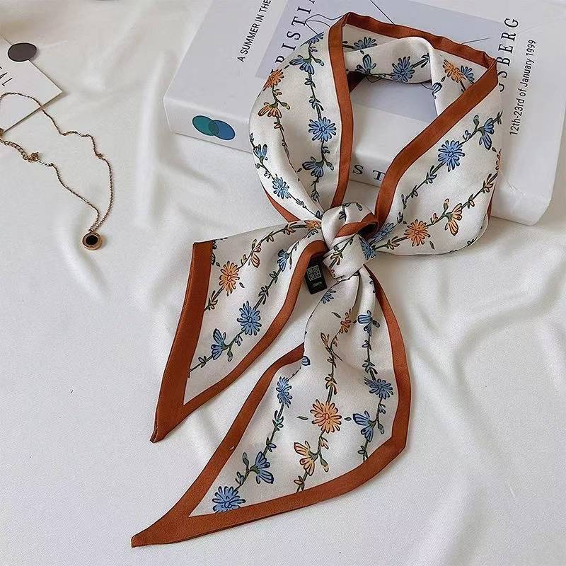 レトロ香港風フラワー柄ニッチなロングスカーフ シャツ用スカーフと組み合わせる春夏新作ヘアアレンジ用リボン付きスカーフ