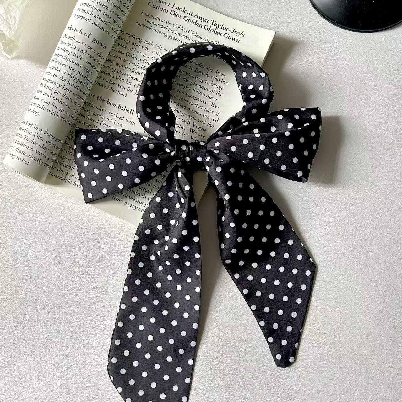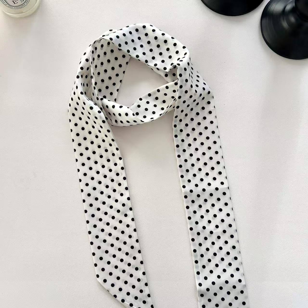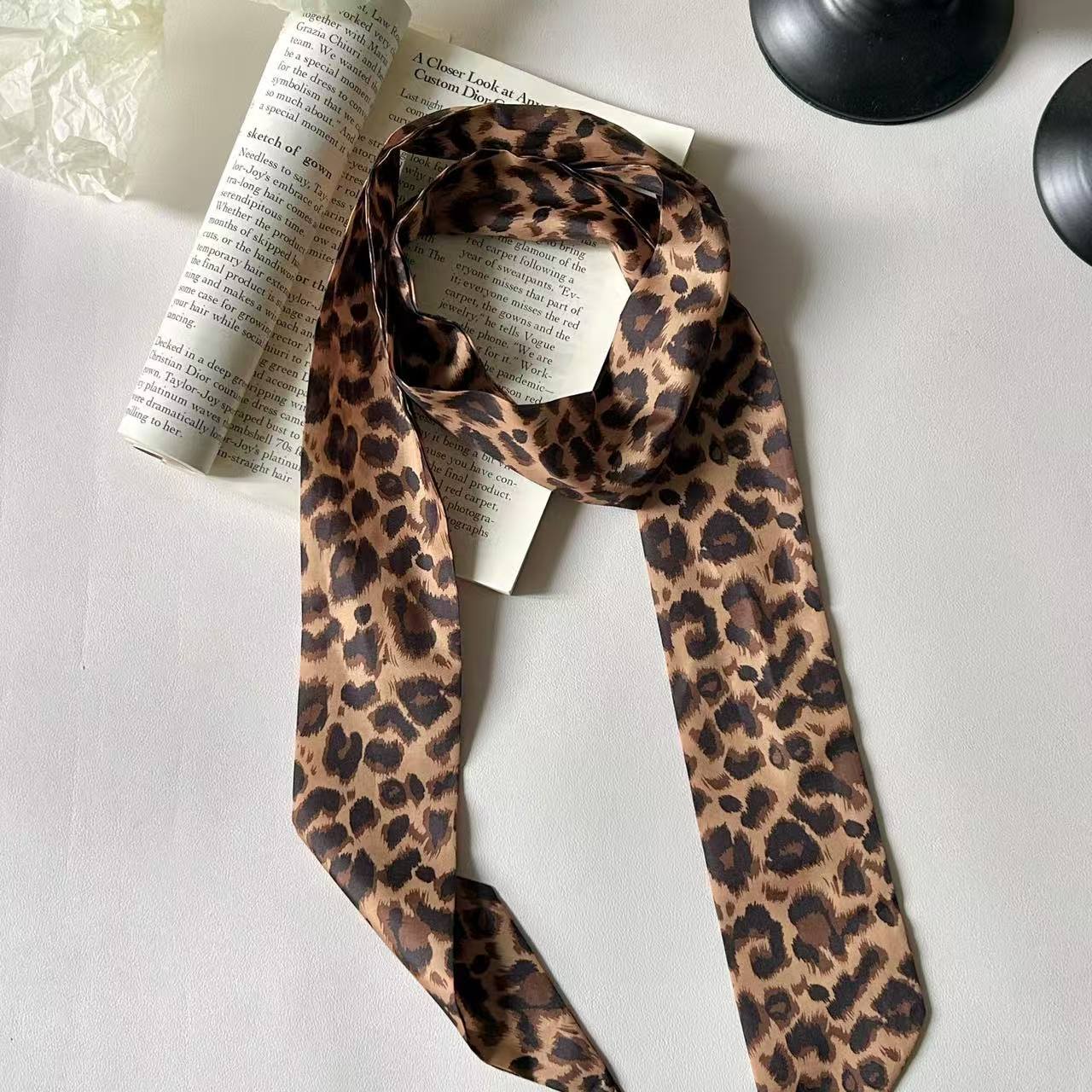 韓国風ヒョウ柄レトロ細長いシルクスカーフ ヘアタイ&ベルト装飾付きおしゃれデザインスカーフ・マフラー・レディーススカーフ