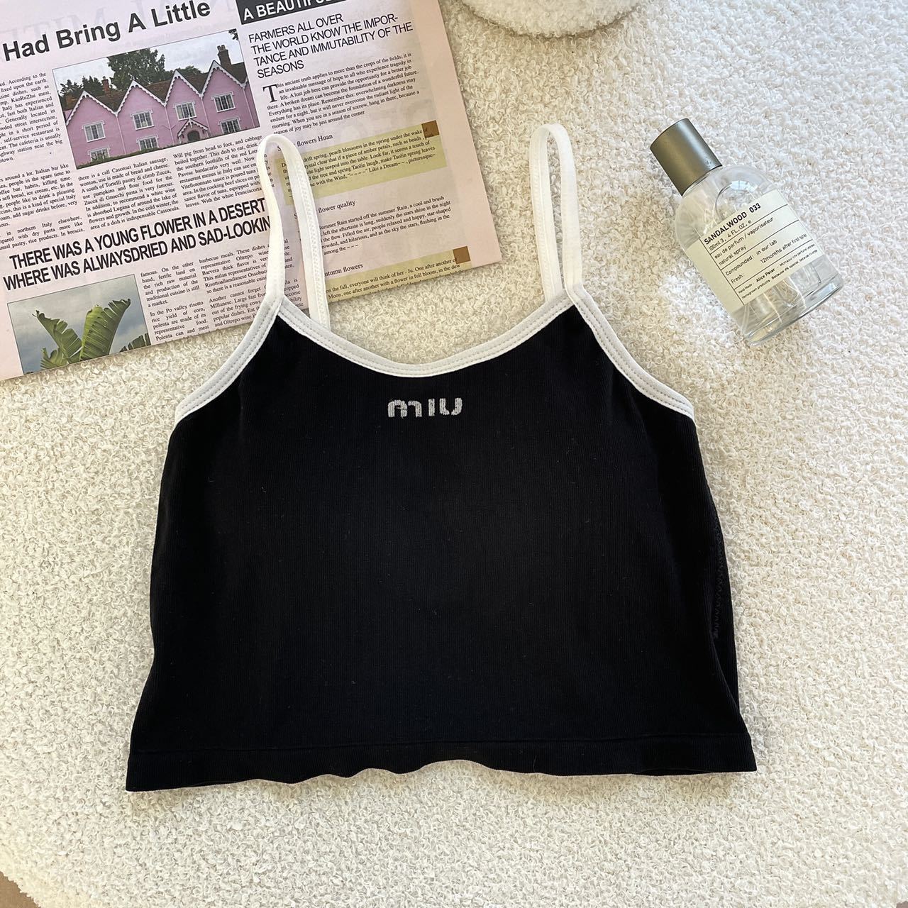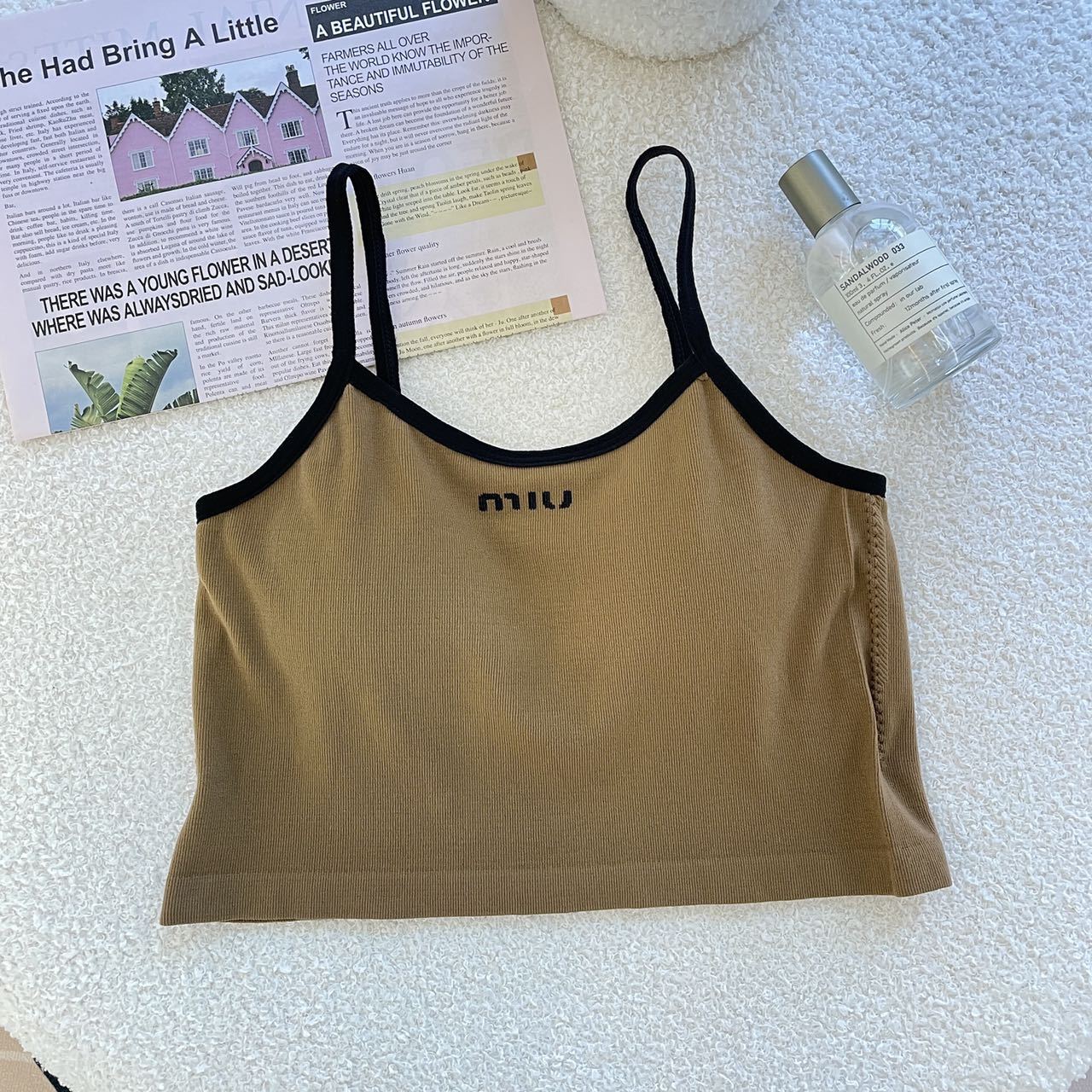 タンクトップ ギャル ショート丈 ツートンカラー ストラップ ベスト 胸当て付き に衣をつける インナー