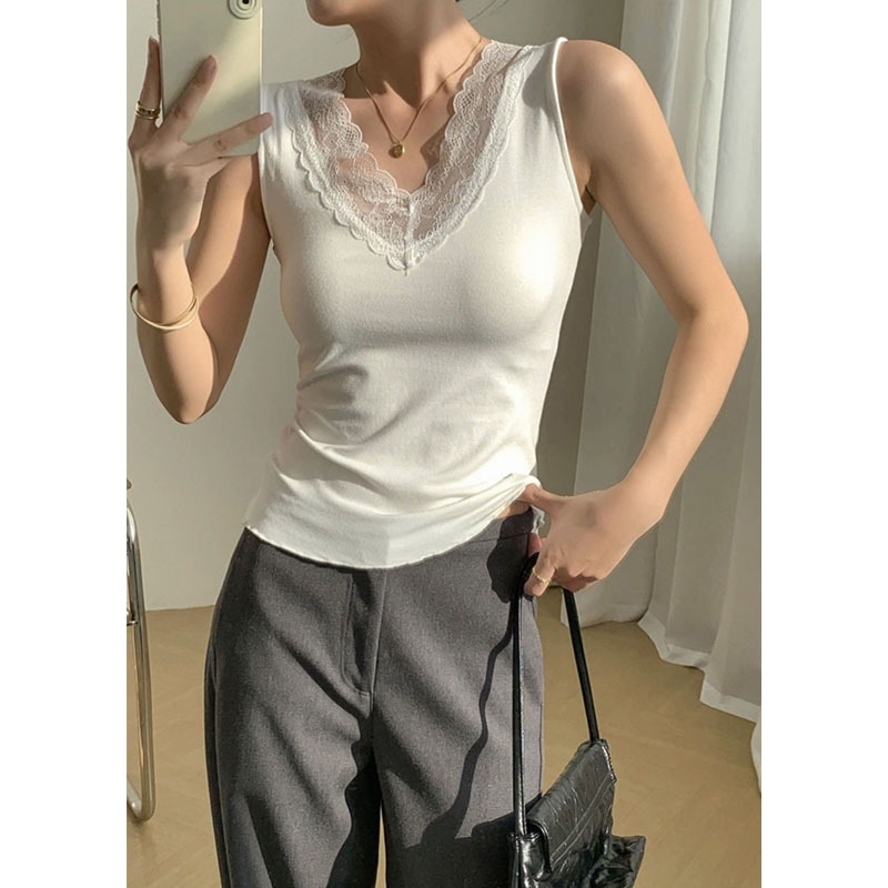 タンクトップ 体を見せる 白 レース ストラップ ベスト 胸当て付き インナー の裏をかく そでなしの上着を着る