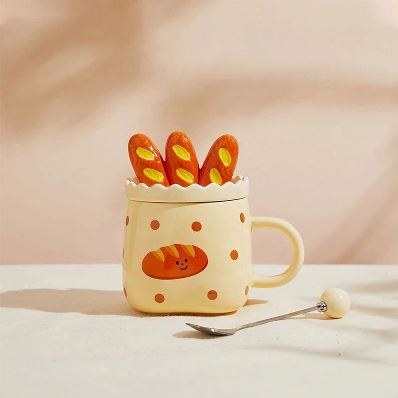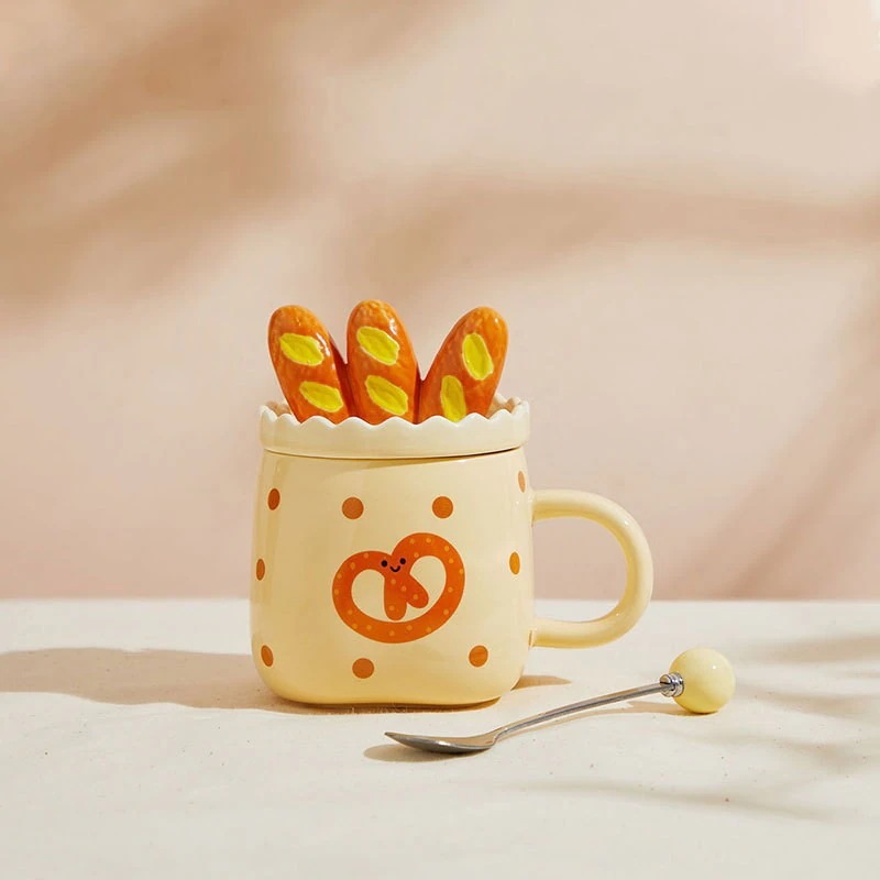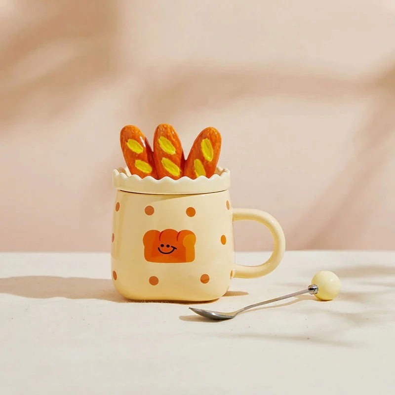 【人気爆売れ中】新作 パン型マグカップ 蓋付きスプーン添え 女性用 家庭用 ミルクカップ 朝食カップ カップルコップ アフタヌーンティーカップ コーヒーカップ 耐熱 日常使い おしゃれ雑貨