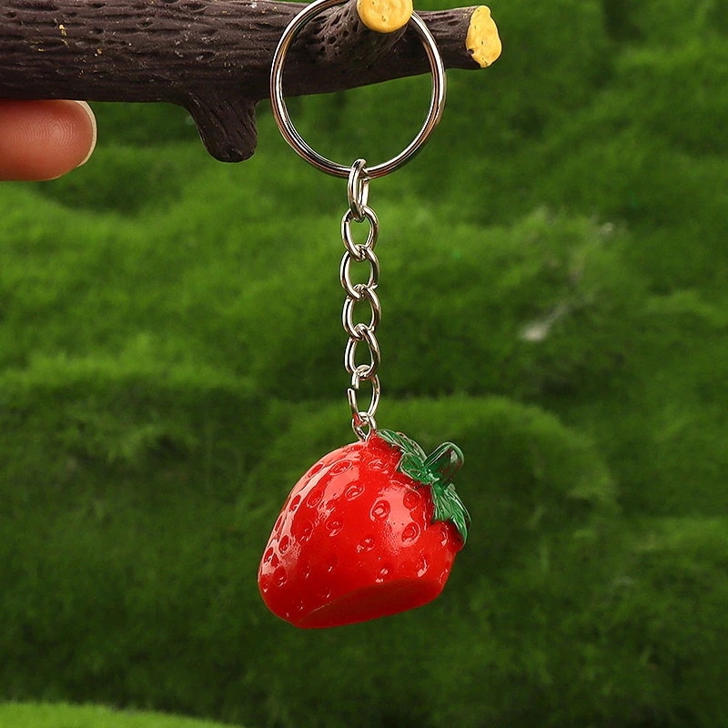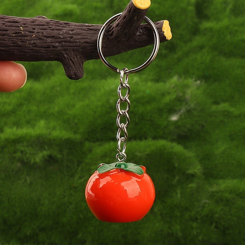 【2個】樹脂フルーツペンダント イチゴレモン柿キーホルダーブレスレットアクセサリーパーツキーリング