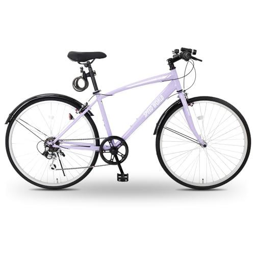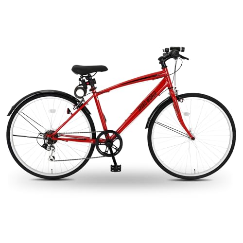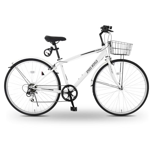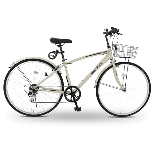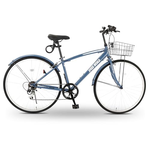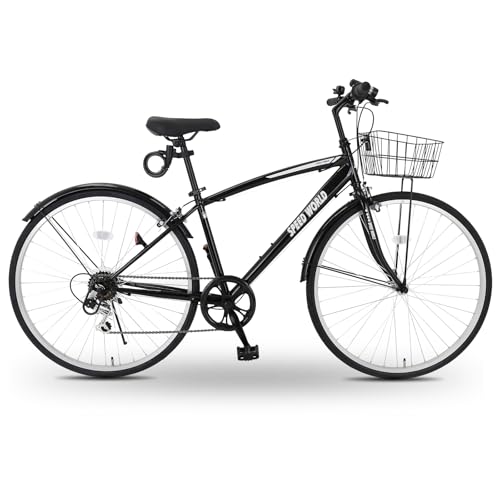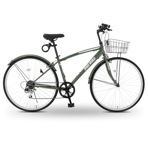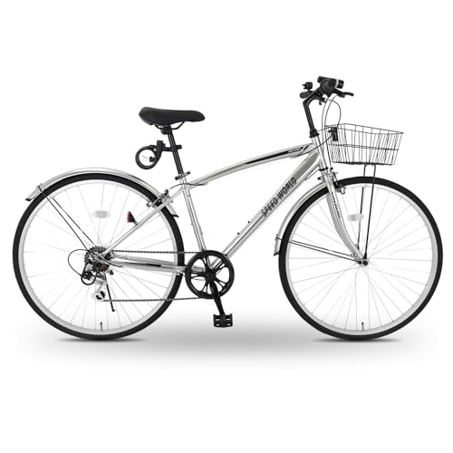 クロスバイク 26/27インチ シマノ外装6段変速 カゴ付き LEDライト 鍵付き サイドスタンド 泥除け付き シティバイク 通勤 通学 街乗り 自転車 大人用 メンズ レディース スポーツバイク【M