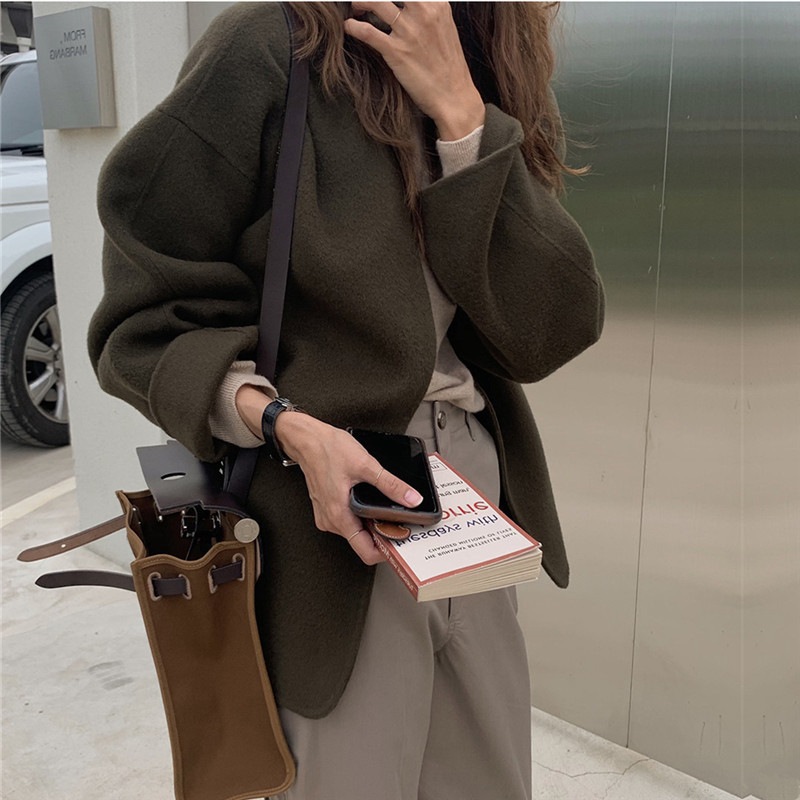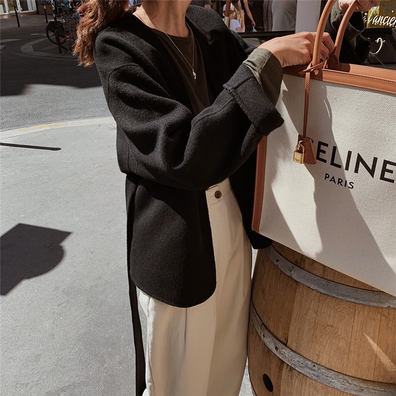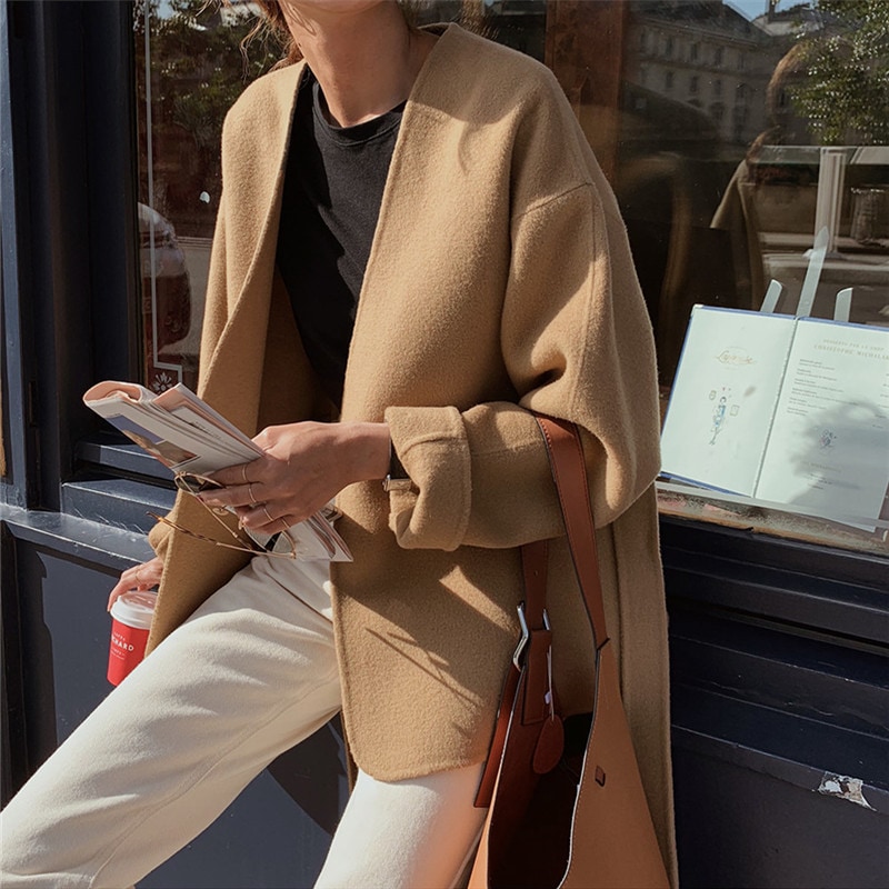 3色3ヤード韓国vネック両面ウール洋気コートカーディガンウールコートきいサイズ