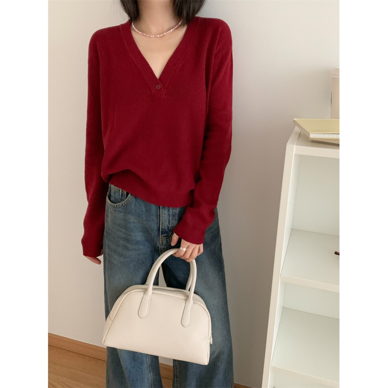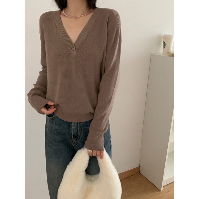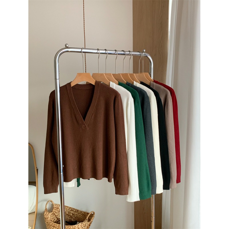 8色韓国多色新しいニットvネックはゆったりしていてやせているデザイン感があります