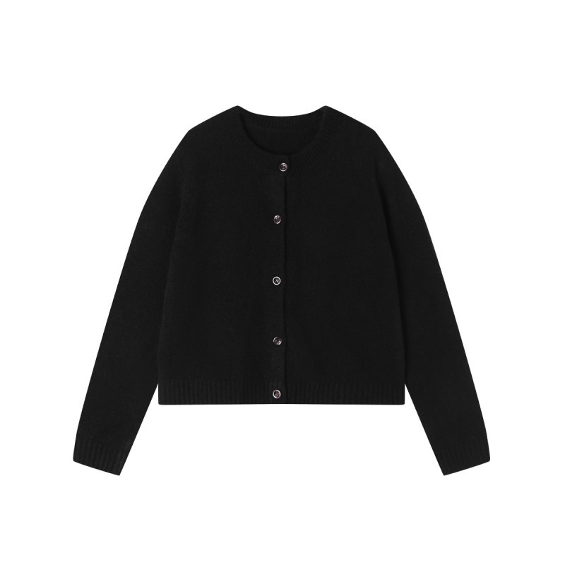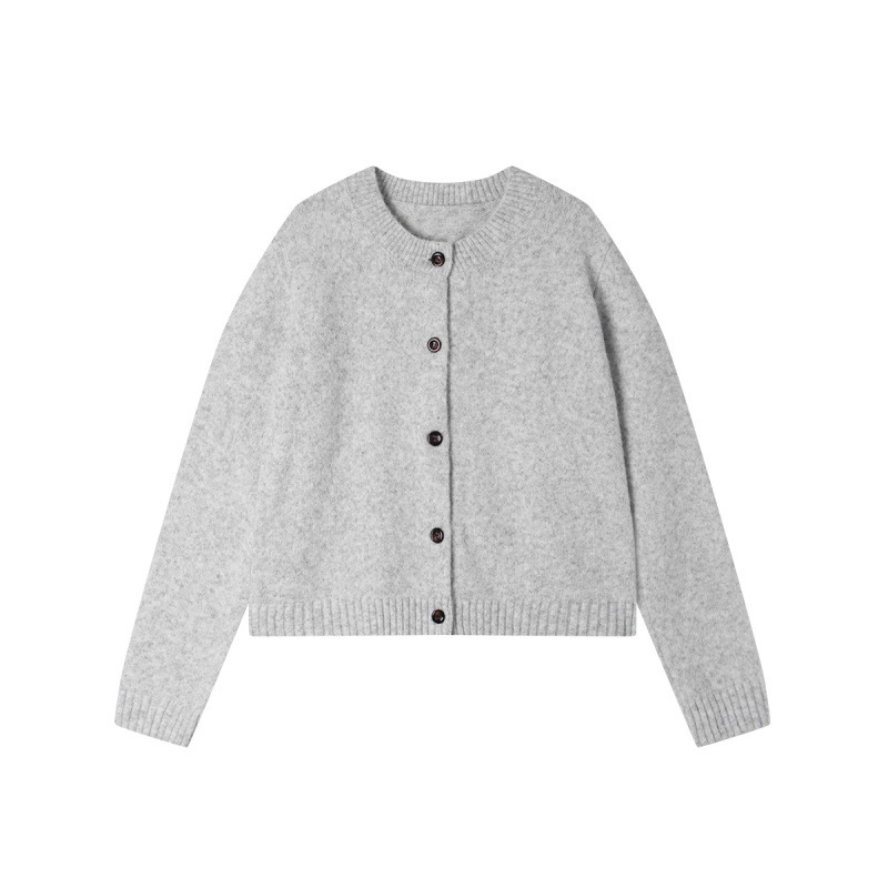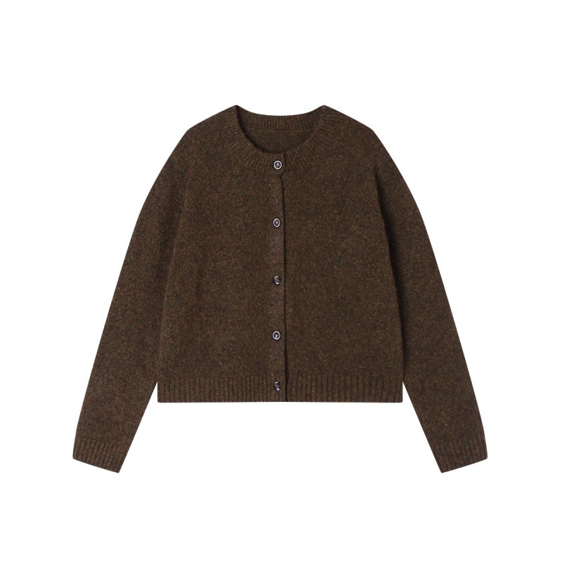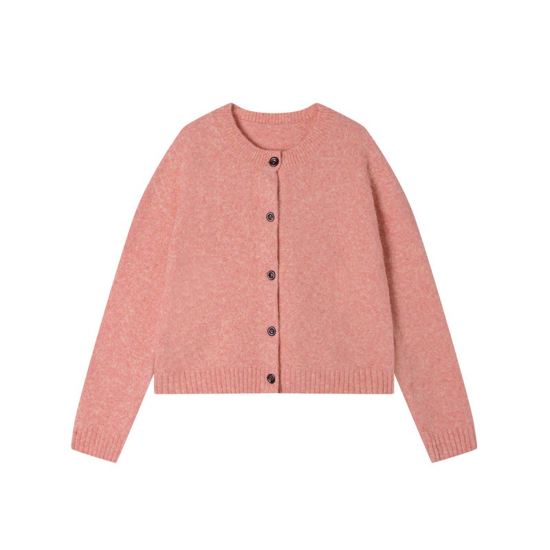 4色カジュアルなコート上着女性秋冬デザイン感雑色丸襟単列ニットカーディガン