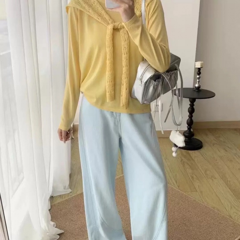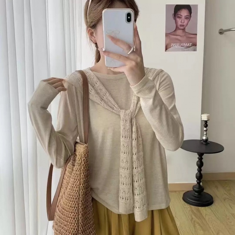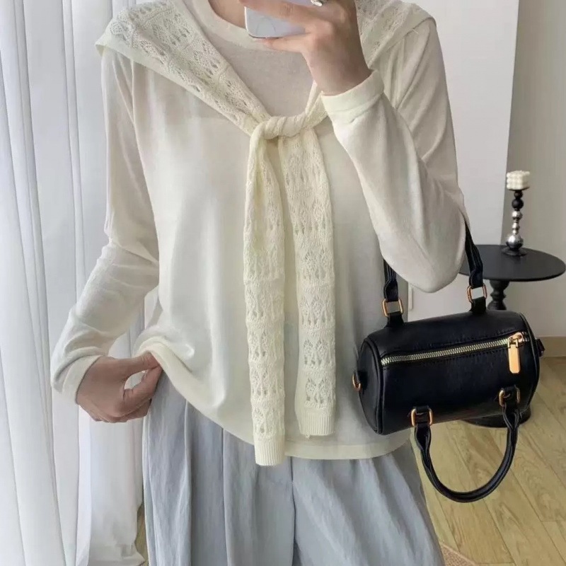 7色超細いウール透かし彫り花ストール2つセットニット秋新商品気質長袖上着女性