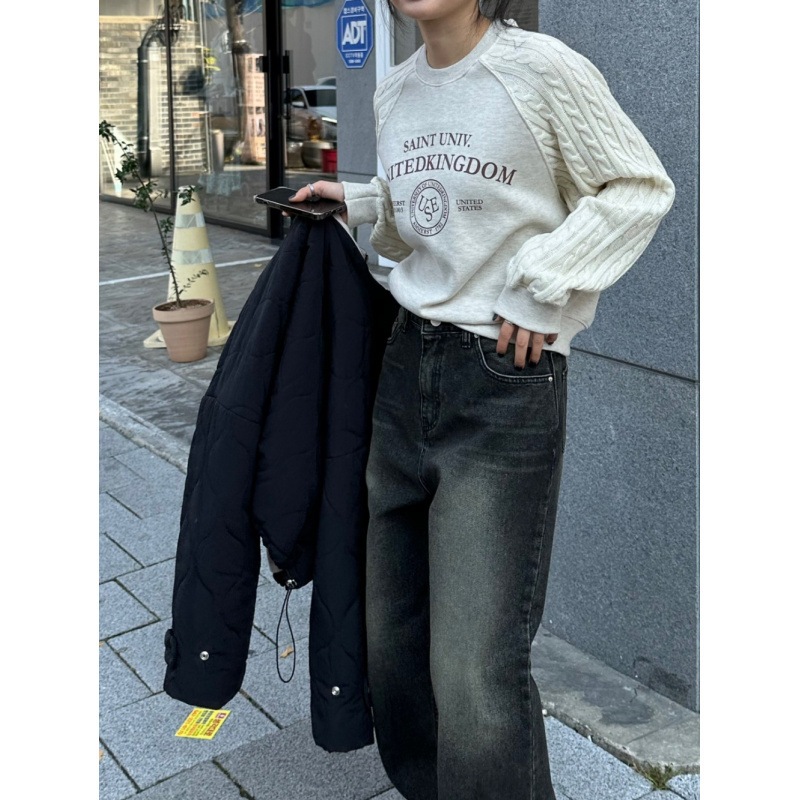 韓国ニットアルファベットプリントプルオーバー女性秋冬デザイン感小さい衆偽2つ上着