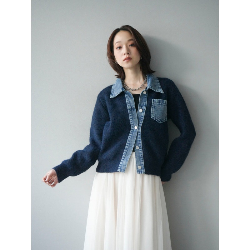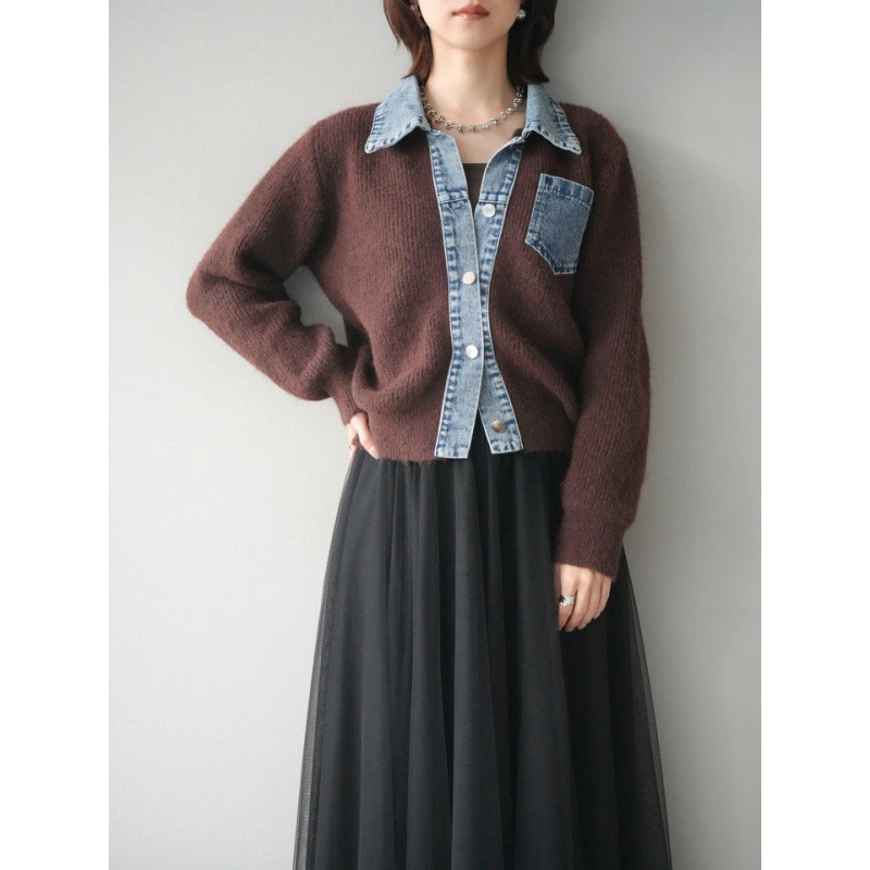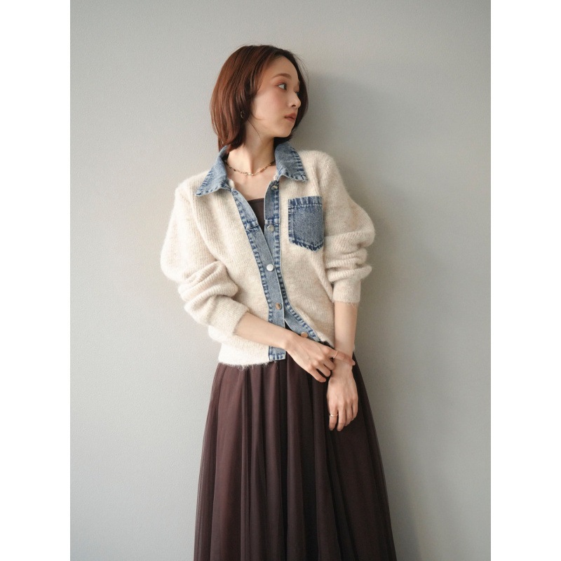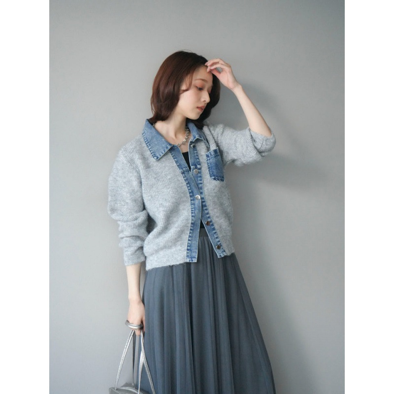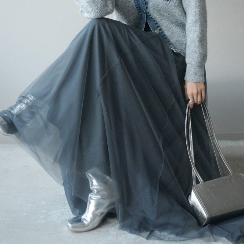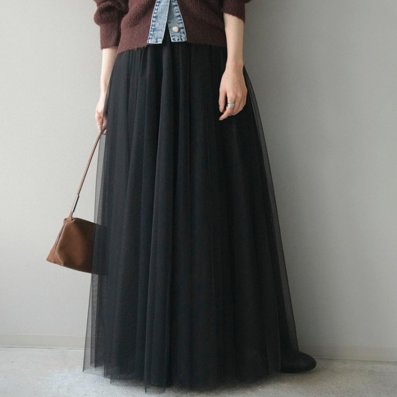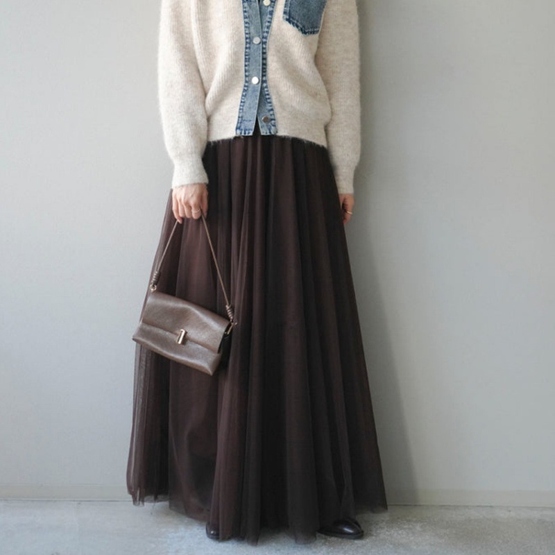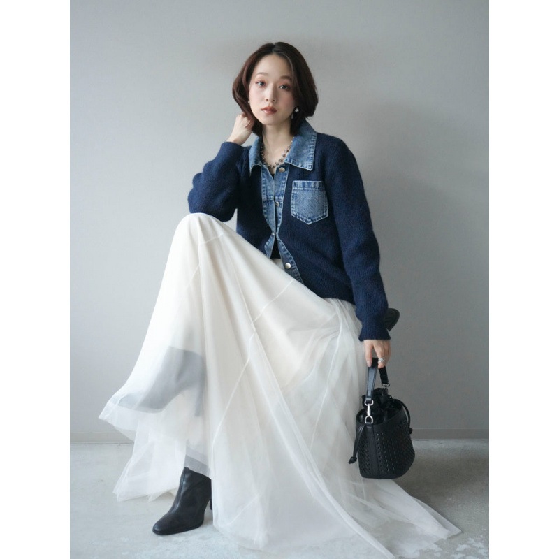 新型デニムニット女性優雅なニットきい振り子網糸半身長いスカート2つセット