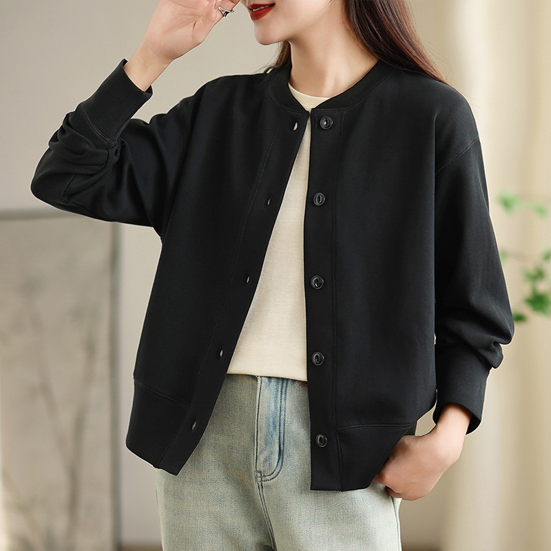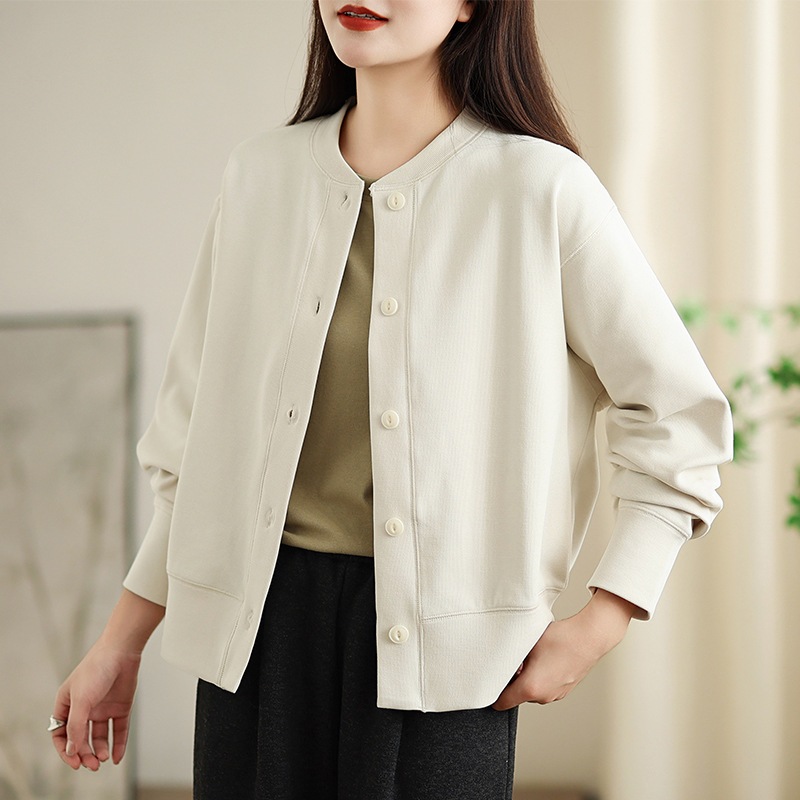 秋新型シンプルで的な綿長袖カーディガン純色ボタンコート女性