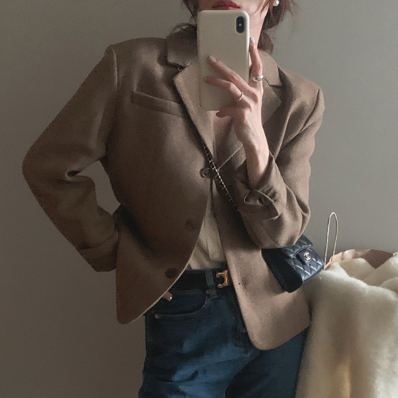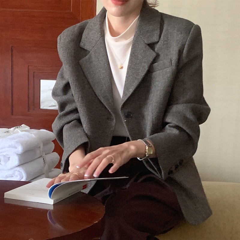 韓国秋新型経典人字紋様毛はゆったりしているコート2色です