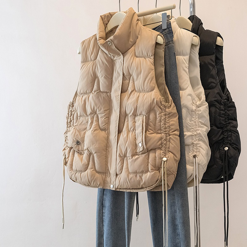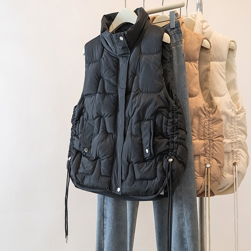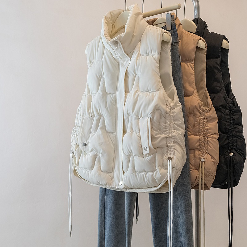 3色韓国側紐立ち襟綿馬甲秋冬保温袖なしゆったりカジュアルコート女性