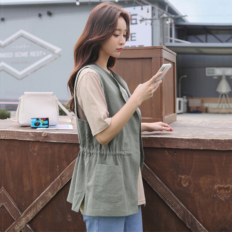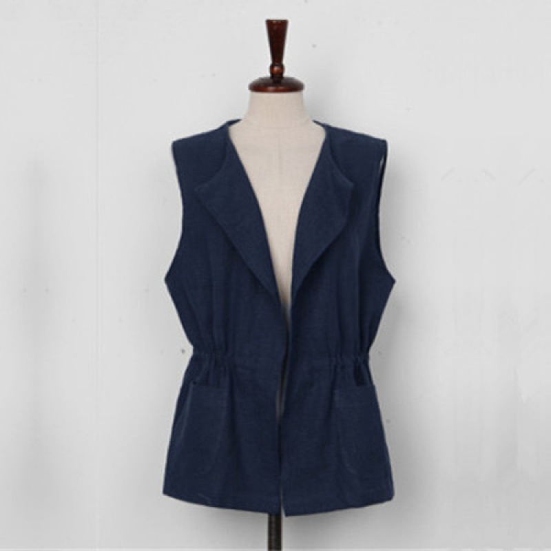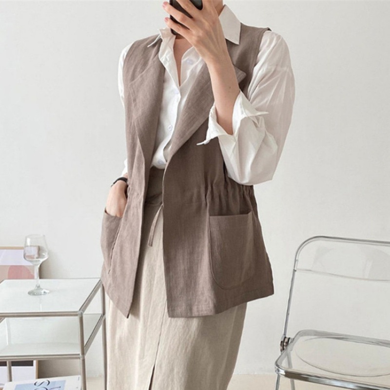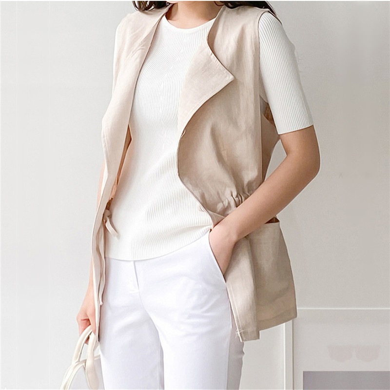 ロープを引いて腰を収めて簡単なカーディガンベスト上着夏新しい小さい清新な袖なし綿麻馬は女性を挟みます