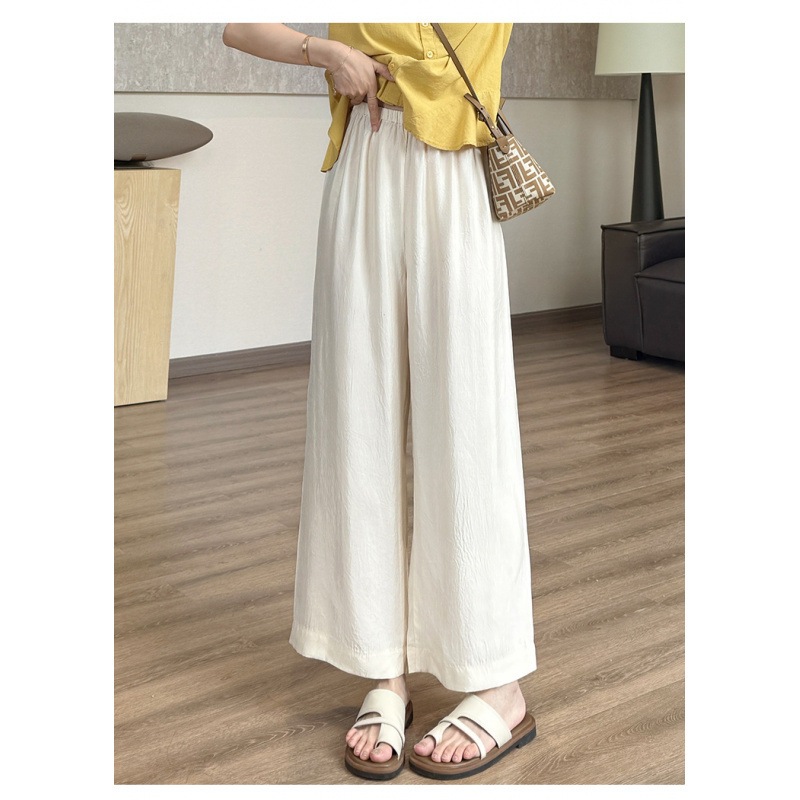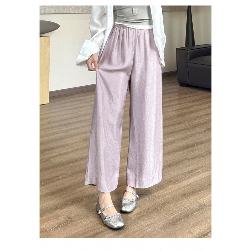 3色9分酢酸ズボン歩くエアコンつや消しはしわ筋クールな広腿ズボン広い辺垂れ下がっているズボンをつかみます