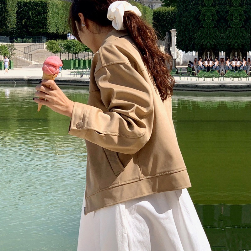 Pol襟気質スエードジッパーコート女性秋新韓国小柄な痩せた上着