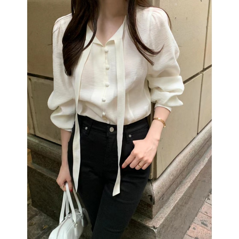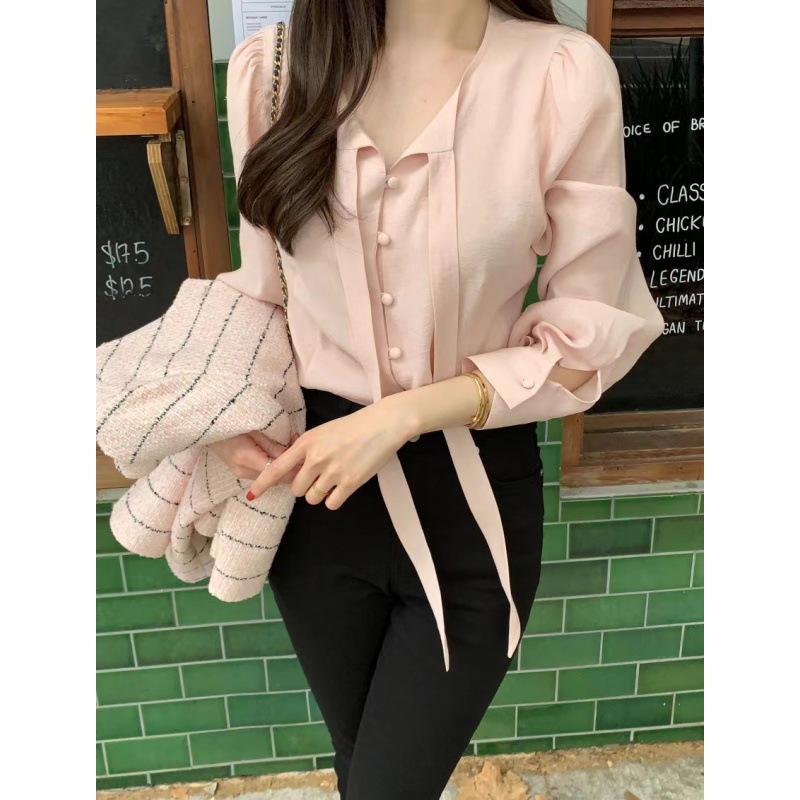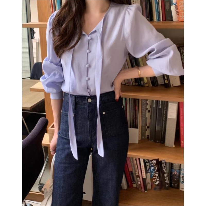韓国chi春フランス式vネックに長袖シャツがあります