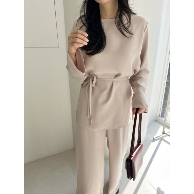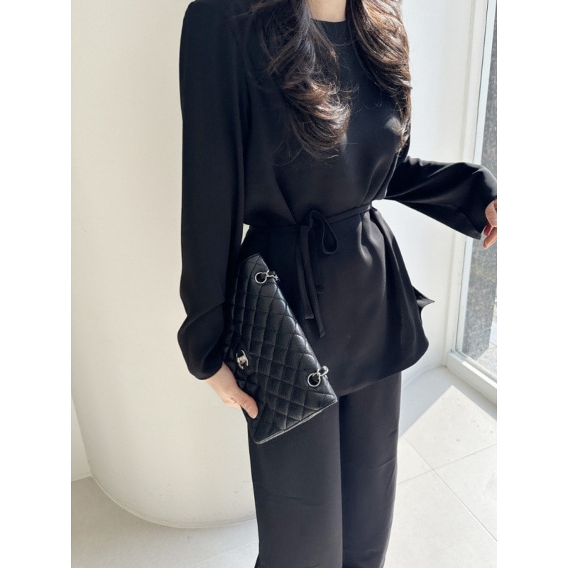 2色韓国chic春フレンチ長袖上着ハイウエストカジュアルパンツセット