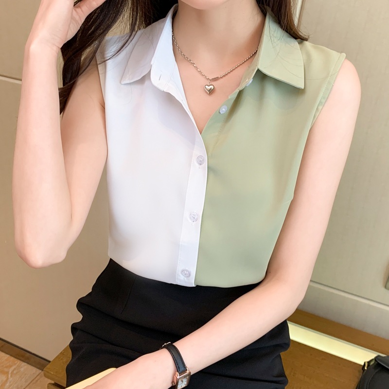 3色韓国洋は夏肩ベスト女性外でシャツ袖なしシフォン底シャツ中で上着を掛けます