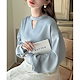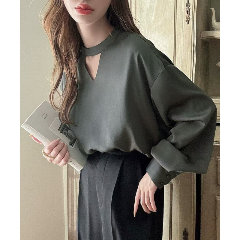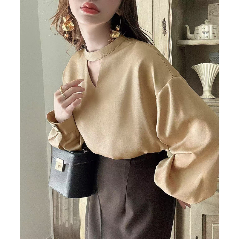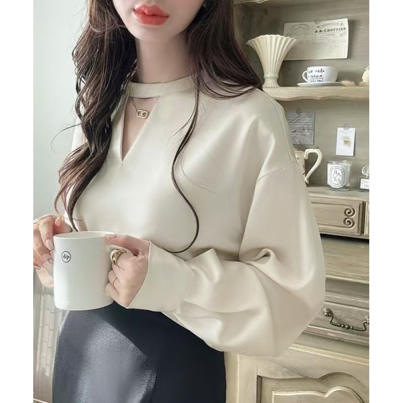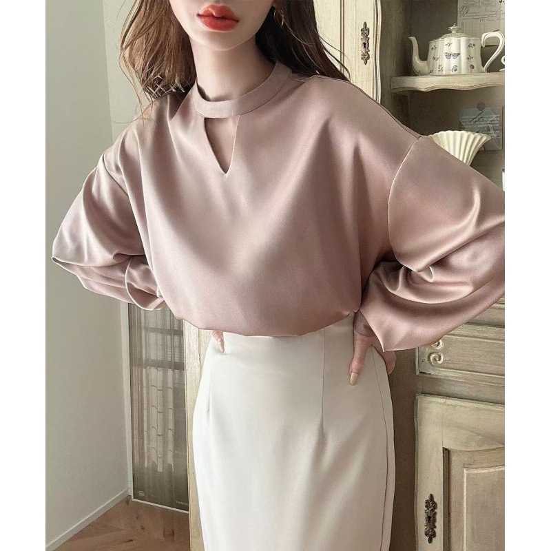 5色4ヤード春夏vネック高級感サテン長袖シャツ