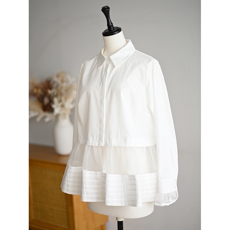 韓国秋重工業は透視女性シャツ蓬蓬女性百合ホワイトカラー上着をつなぎ合わせます