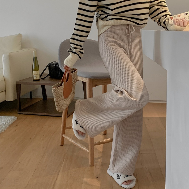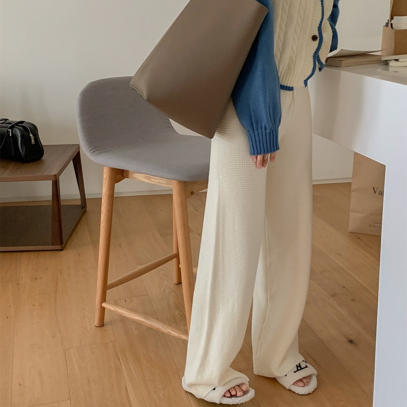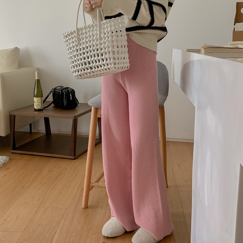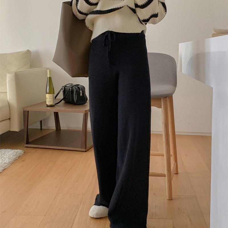 5色韓国秋冬ニットハイウエスト広足ストレート長ズボン