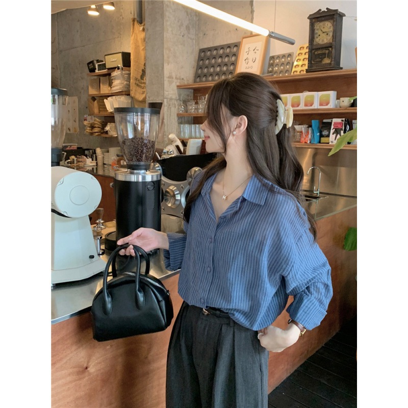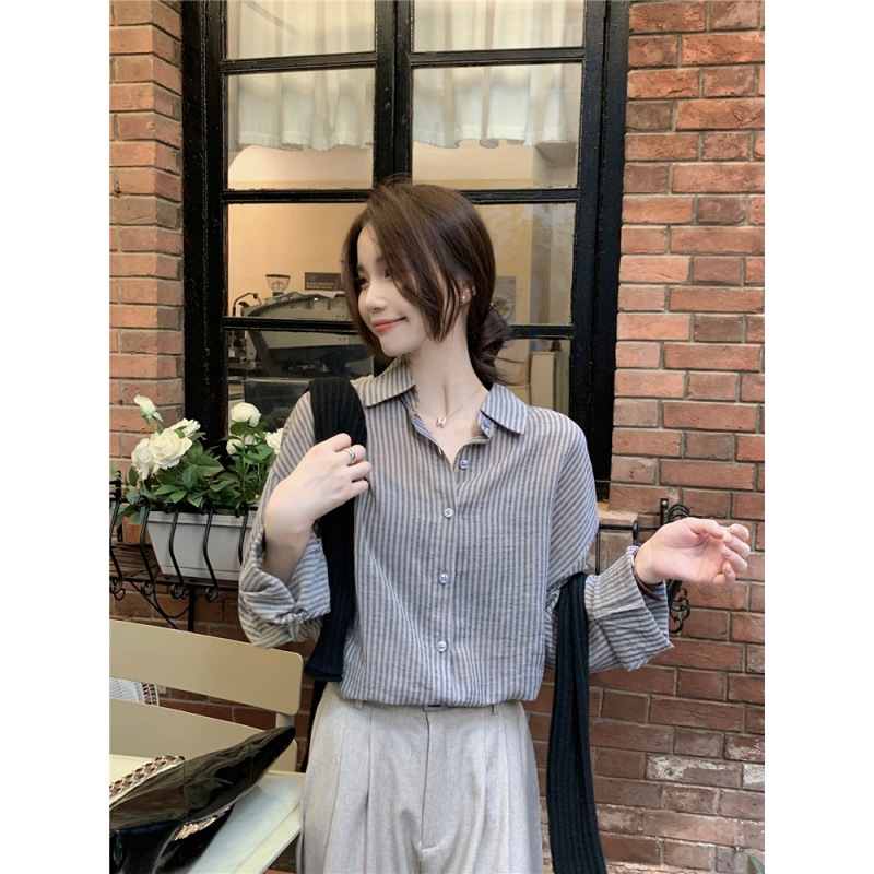 2色韓国怠惰なはシンプルでゆったりしたストライプシャツです