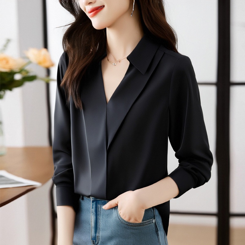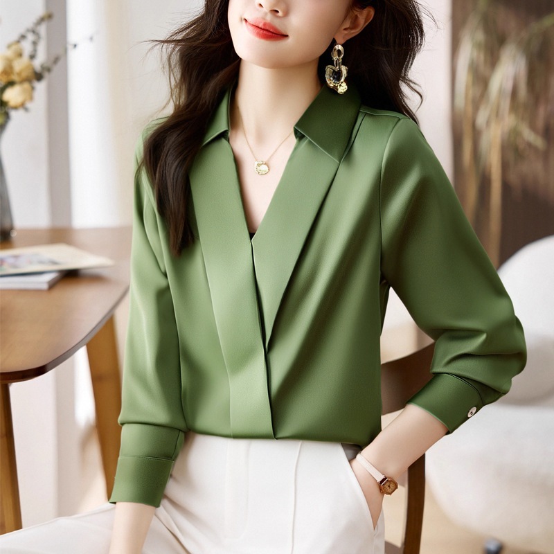 3色5ヤードサテンシミュレーション新しい襟純色シフォン上着カーディガンシャツはシャツを打ちます