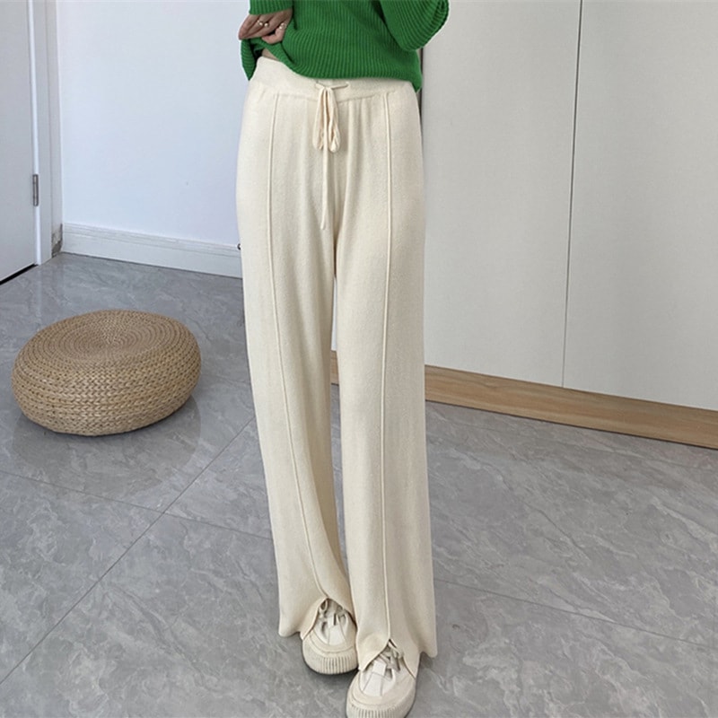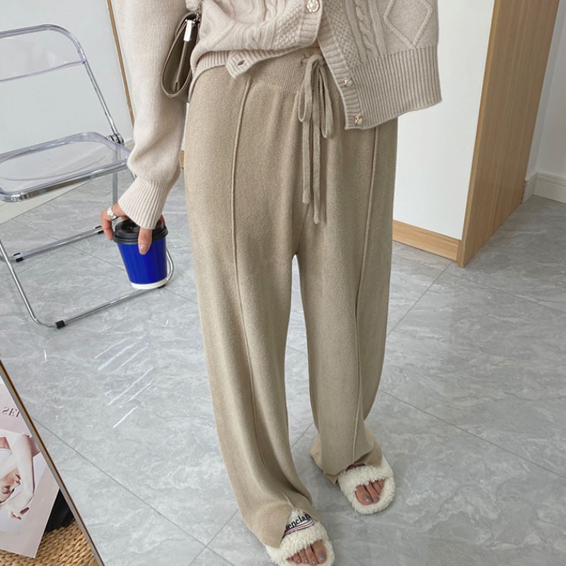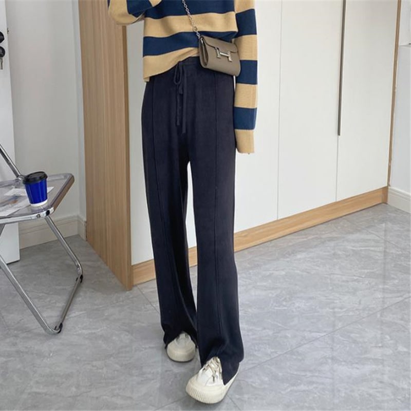 3色韓国秋冬ハイウエスト垂れ下がった感じカジュアルなストレートカバー股広いズボンが開いています