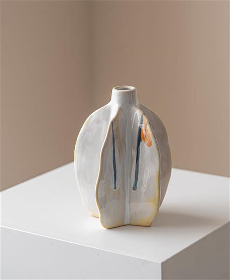 INSスタイル 白い流れる釉薬が美しい スターフルーツ型 テーブル花瓶 卓上装飾 ナチュラルなインテリア小物 ギフト対応