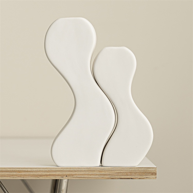 INSスタイル 単色でシンプルなデザインの陶器製花瓶 2 点組み合わせ 北欧風の住空間を飾る雑貨 実用的な構造のフラワーベース 多様な花のスタイルに対応する自宅用インテリア花器