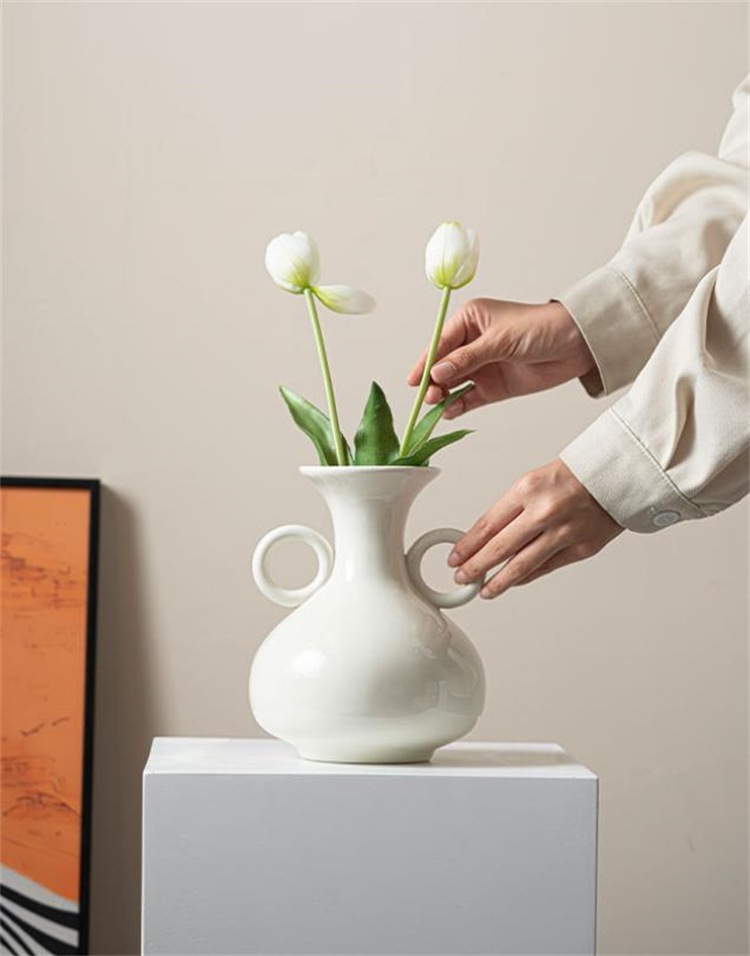 激安セール 両耳付きレトロシンプルフラワーベース ミッドセンチュリー調のアートな陳列置物 2026 年の完全新デザインのドライフラワー用器 家全体のインテリアに合わせられ日常の社交で贂れる陶磁器花器