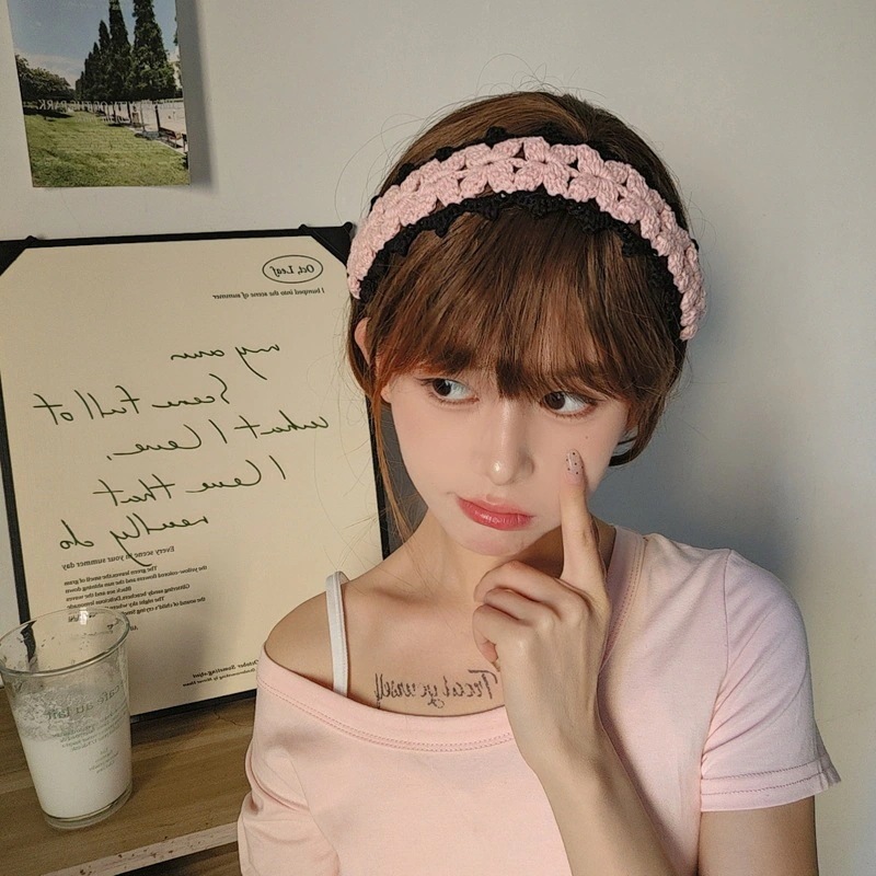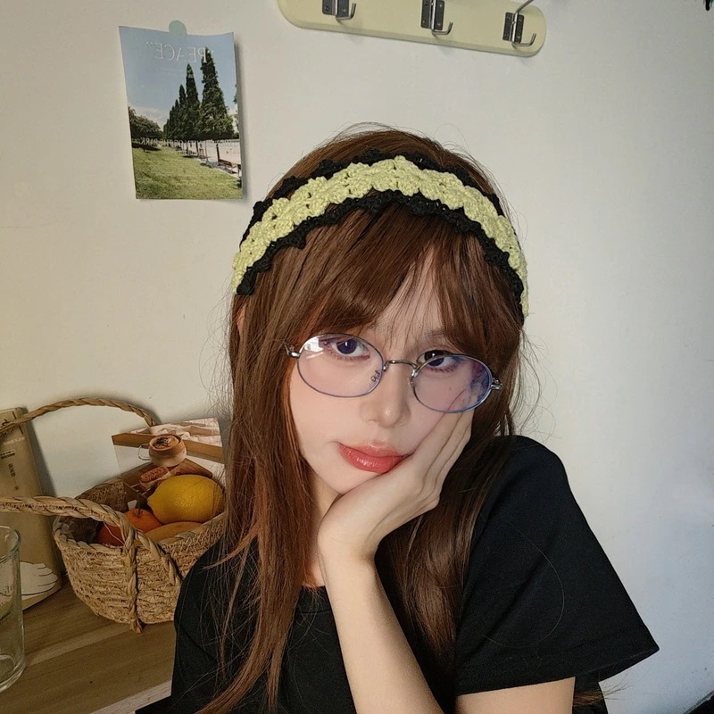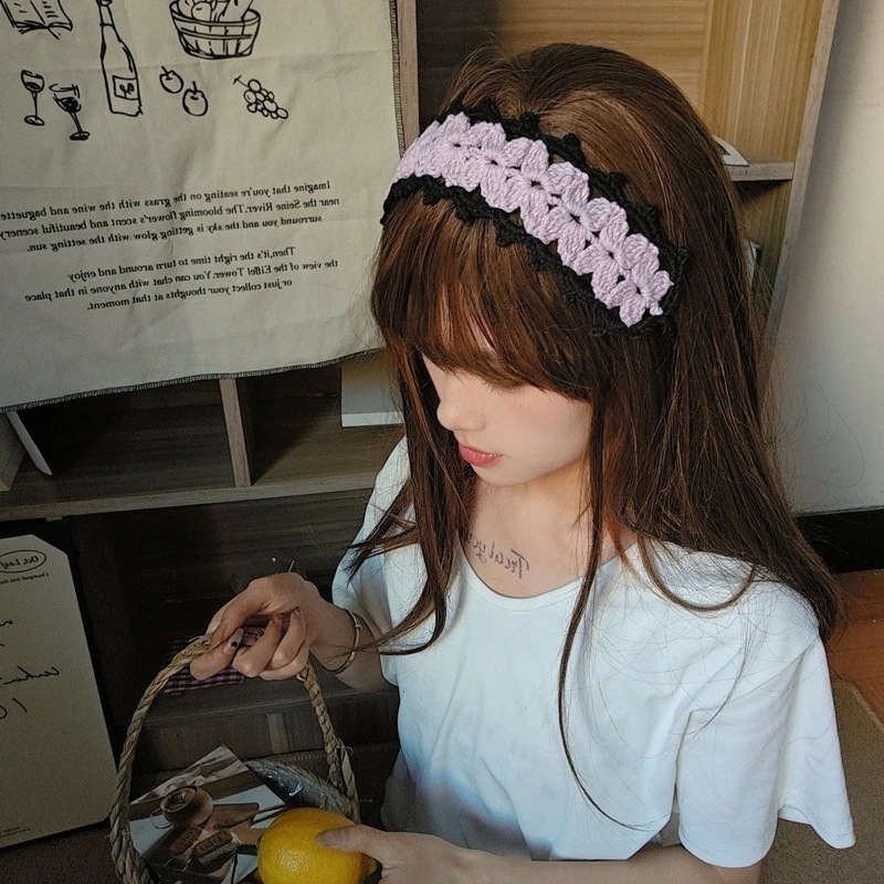 【3日出荷】ニットレースヘアバンド 写真映え フレンチ お出かけ レトロ可愛い バブーシュカ