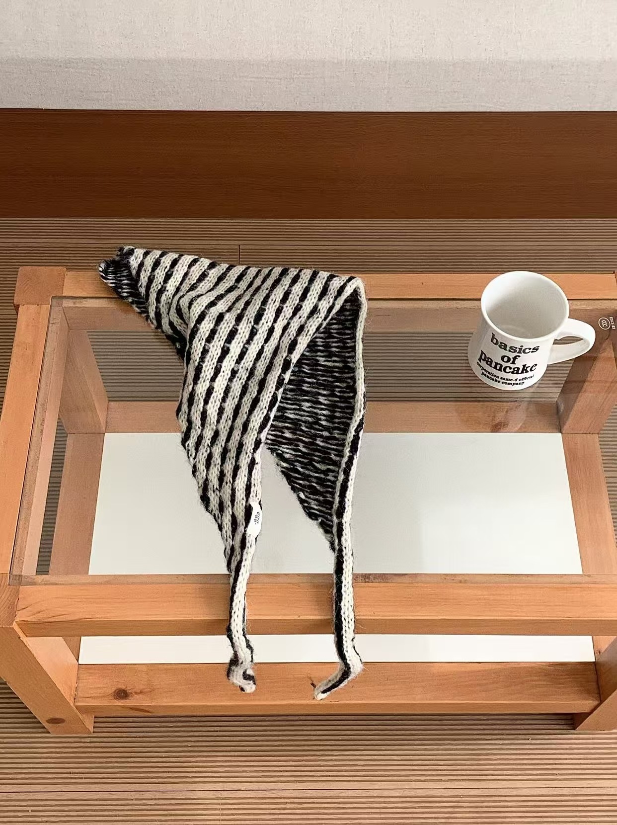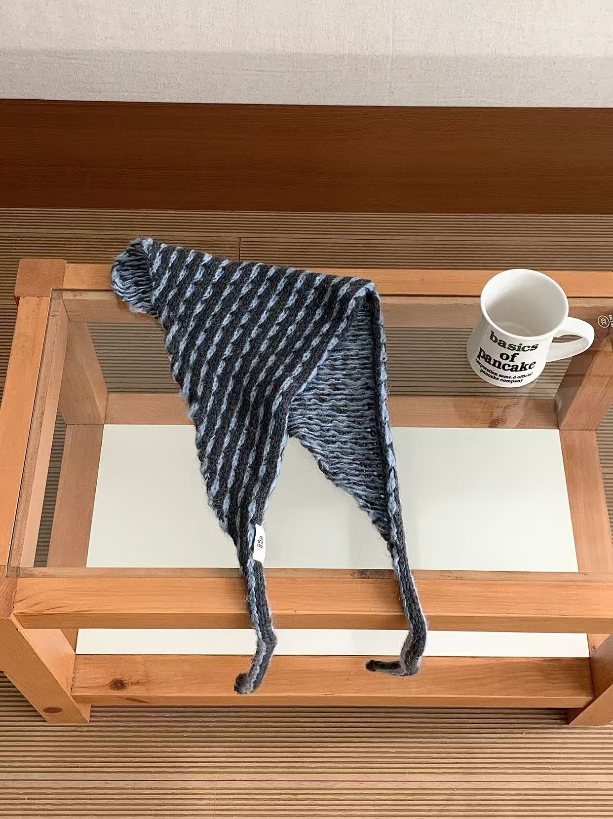 【3日出荷】韓国インスタ風 ストライプ三角スカーフ 多機能 耳あて マフラー バブーシュカ