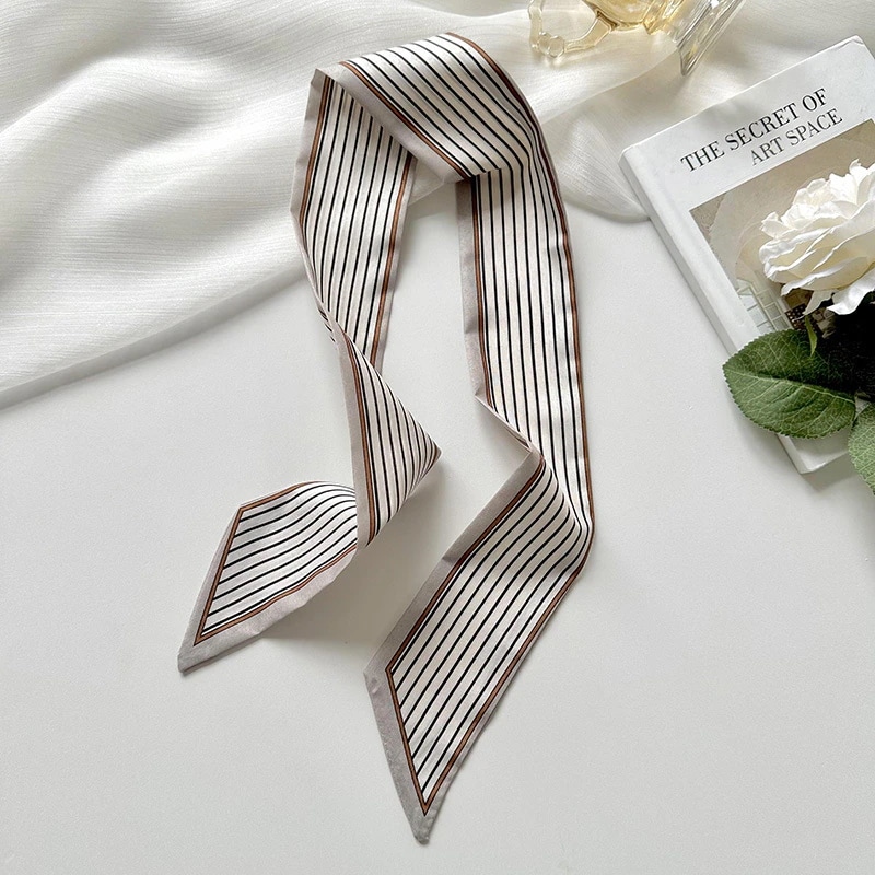 新作スリムロングスカーフ女性用 韓国風万能高級感ロングスカーフ ヘアバンド・バッグチャーム・装飾用スカーフ・リボン シルクスカーフ