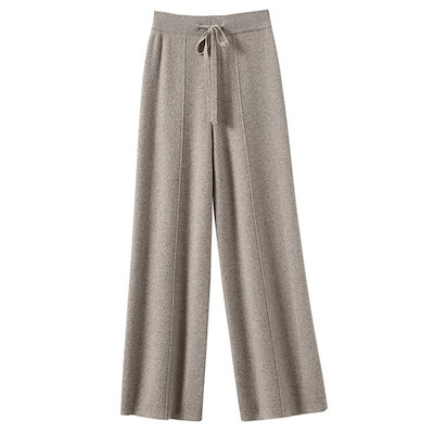 [Tuten] ニットパンツ レディース 柔らかい ロングパンツ 秋冬 無地 暖かい 防寒 おしゃれ 通勤 着痩せ ロング ワイド 着回し シンプル(Light camel-XL)