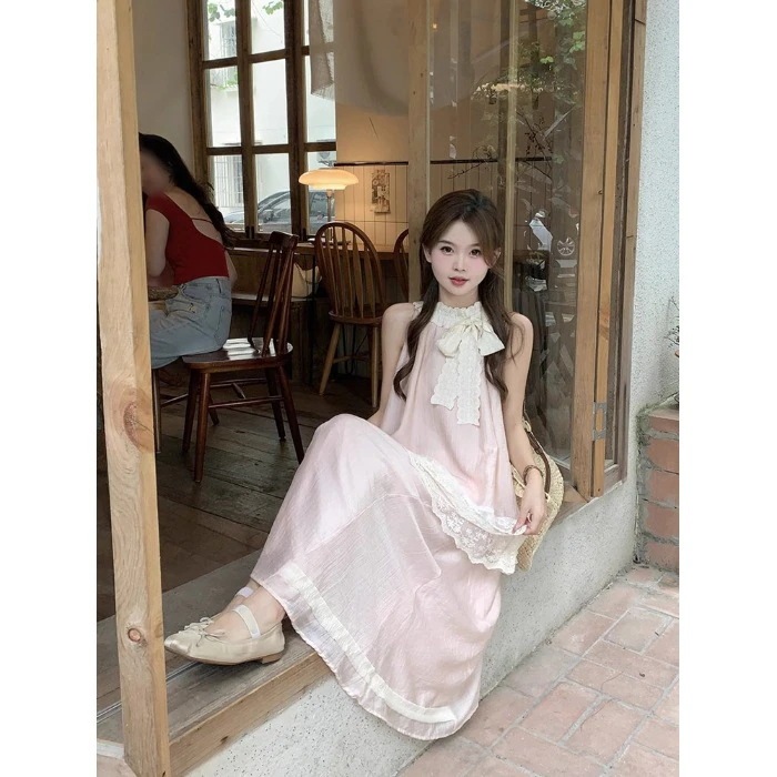 ファッション レースワンピース ホルターネック ワンピース キャミソール ハイウエスト ワンピース レディース