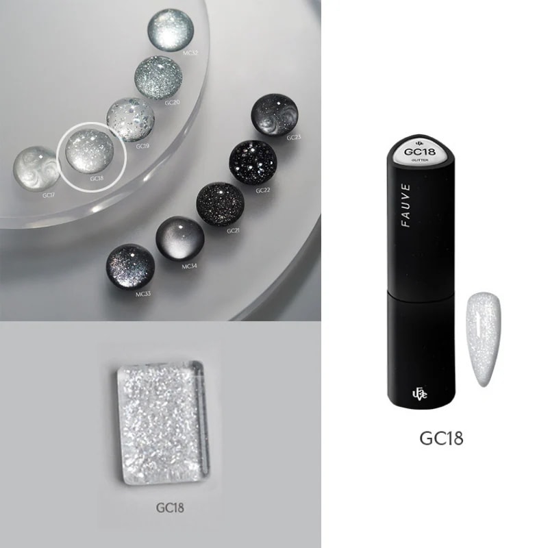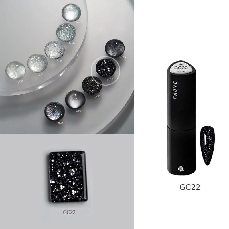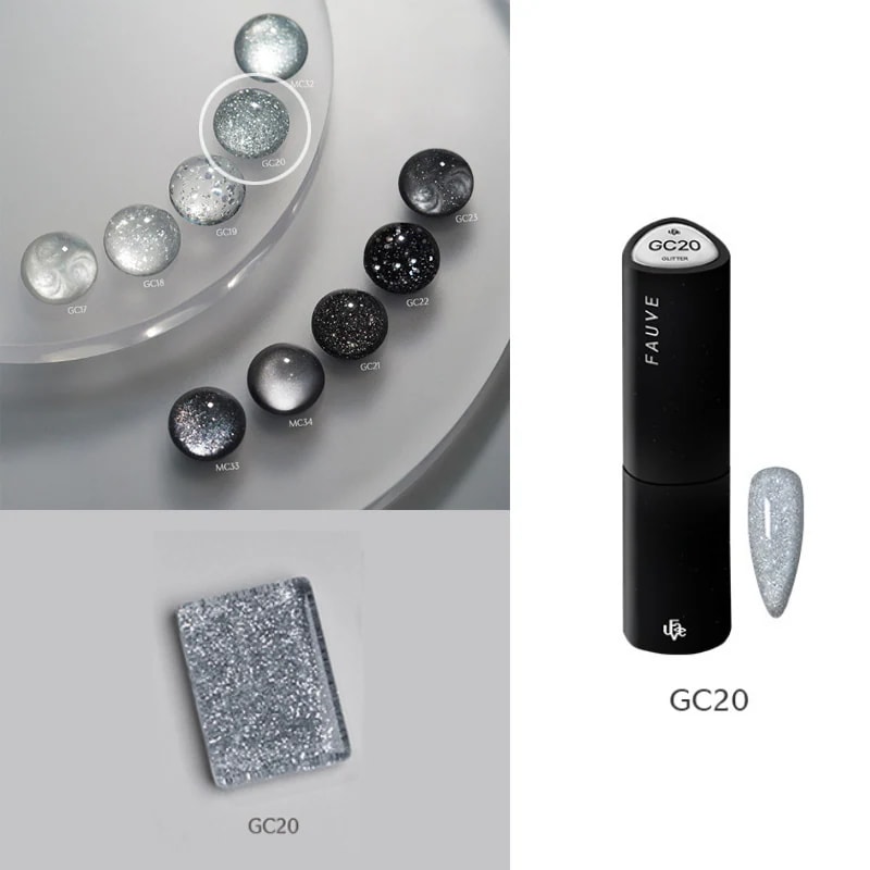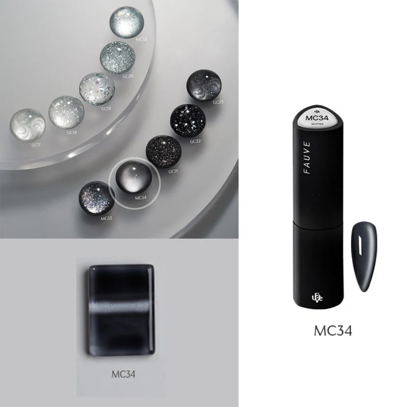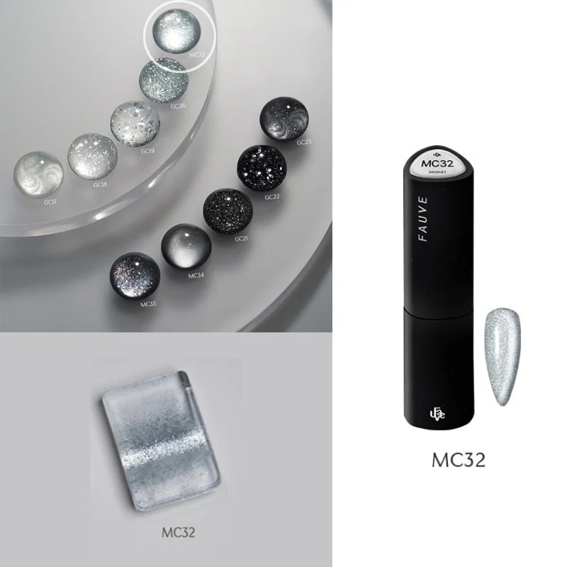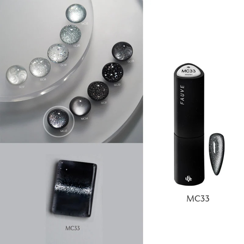 [FAUVE] 【GRIT】 Glitter Magnet Gel collection [10色 1+1 個別購入] ブラック&シルバーのモノトーンで仕上げた 10種のテクスチャースペクトラム